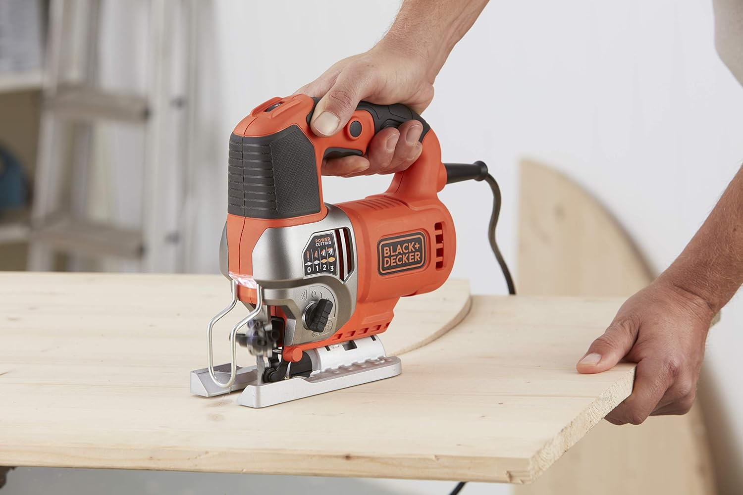 Black+Decker Elektronik-Pendelhub-Stichsäge (650W, 3 Pendelhubstufen, variable Hubzahl, Aluminium-Druckguss-Sägeschuh, Staubabsaugvorrichtung, für gerade-, Kurven- und Gehrungsschnitte) Bes610 | قیمت یورویی 54.99€