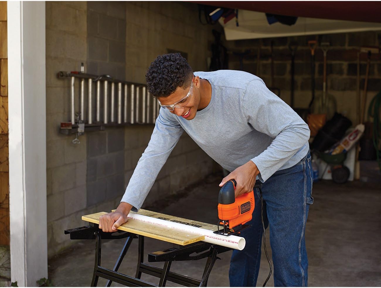 Vielseitig verwendbar: Leichte und sehr kompakte 520 Watt Stichsäge für Gerad-, Kurven und Gehrungsschnitte Extra ergonomisch: Softgriff und gummierte Flächen bieten hohen Komfort und kontrolliertes Arbeiten mit geringer Vibration dank Ausgleichsgewichte Sight-Line-Kanal: Jederzeit gute Sicht auf die Schnittlinie dank Sägeblasfunktion und optimal positioniertem Schutzbügel Anwenderfreundlich: Werkzeugloser Sägeblattwechsel für einen schnellen und sicheren Wechsel des Zubehörs und Anschluss für Staubabsaugung Lieferumfang: 1x 520 Watt Stichsäge, 1x Holzsägeblatt | قیمت یورویی : 51€