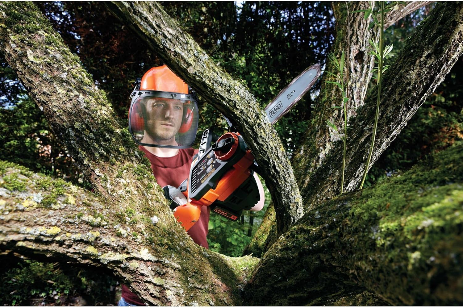 Hohe Leistung: Dank ihrer hohen Schnittkapazität und ihres 25 cm langen Schwerts schneidet die BLACK+DECKER Kettensäge Holz bis zu 18 cm Durchmesser schnell und ohne viel Kraftaufwand Maximale Sicherheit: Die Motorsäge ist mit einer Einschaltsperre, einem Bügelgriff mit Handschutz und einer rückschlagarmen Chromkette ausgestattet, für sicheres und komfortables Arbeiten Nachhaltig und leise: Diese kabellose Motorkettensäge ist eine gute Wahl für Holz- und Gartenarbeit, sie glänzt durch ihre leise, vibrationsarme Art und emittiert keine Abgase dank des Akkubetriebs Maximaler Komfort: Der ergonomische Griff und das Gutee Design fördern die Griffigkeit beim Arbeiten, die Kettenspannung kann einfach und schnell werkzeuglos gewechselt werden Kabellos und flexibel: Die Akku-Technologie ermöglicht kabelloses Arbeiten, was die Flexibilität und Mobilität bei der Gartenarbeit erhöht Langlebige Konstruktion: Die robuste Bauweise und die hochwertigen Materialien sorgen für eine lange Lebensdauer und zuverlässige Leistung Einfache Handhabung: Die werkzeuglose Kettenspannung und der ergonomische Griff sorgen für eine einfache und komfortable Handhabung Vielseitige Einsatzmöglichkeiten: Geeignet für Holz- und Gartenarbeiten, wie das Schneiden von Ästen, Baumstämmen und Brennholz Vertrauenswürdige Marke: BLACK+DECKER ist seit Jahrzehnten ein führender Hersteller von Elektrowerkzeugen und bietet Produkte, die für ihre Qualität und Zuverlässigkeit bekannt sind Lieferumfang: 1x Akku-Kettensäge inkl. Kettenschutzköcher, ohne Akku und Ladegerät, alles, was Sie für präzises und effizientes Arbeiten benötigen | قیمت یورویی : 115.62€