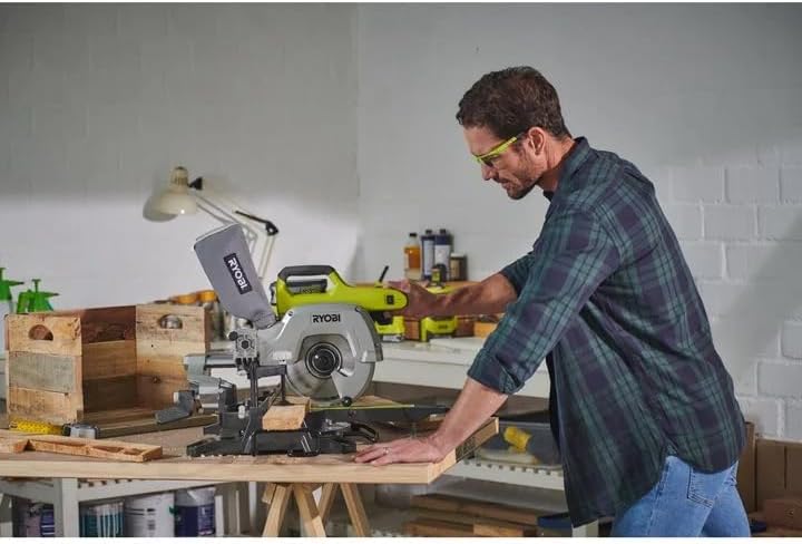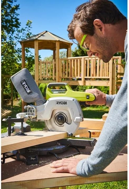 RYOBI 18 V ONE+ Akku Kapp-oderGehrungssäge R18MS216-0, Kappsäge mit Zugfunktion, stufenloser Gehrungswinkel, Neigungswinkel 0° - 45°, Tischplatte aus Aluminium-Druckguss, ohne Akku und Ladegerät | قیمت یورویی 339€
