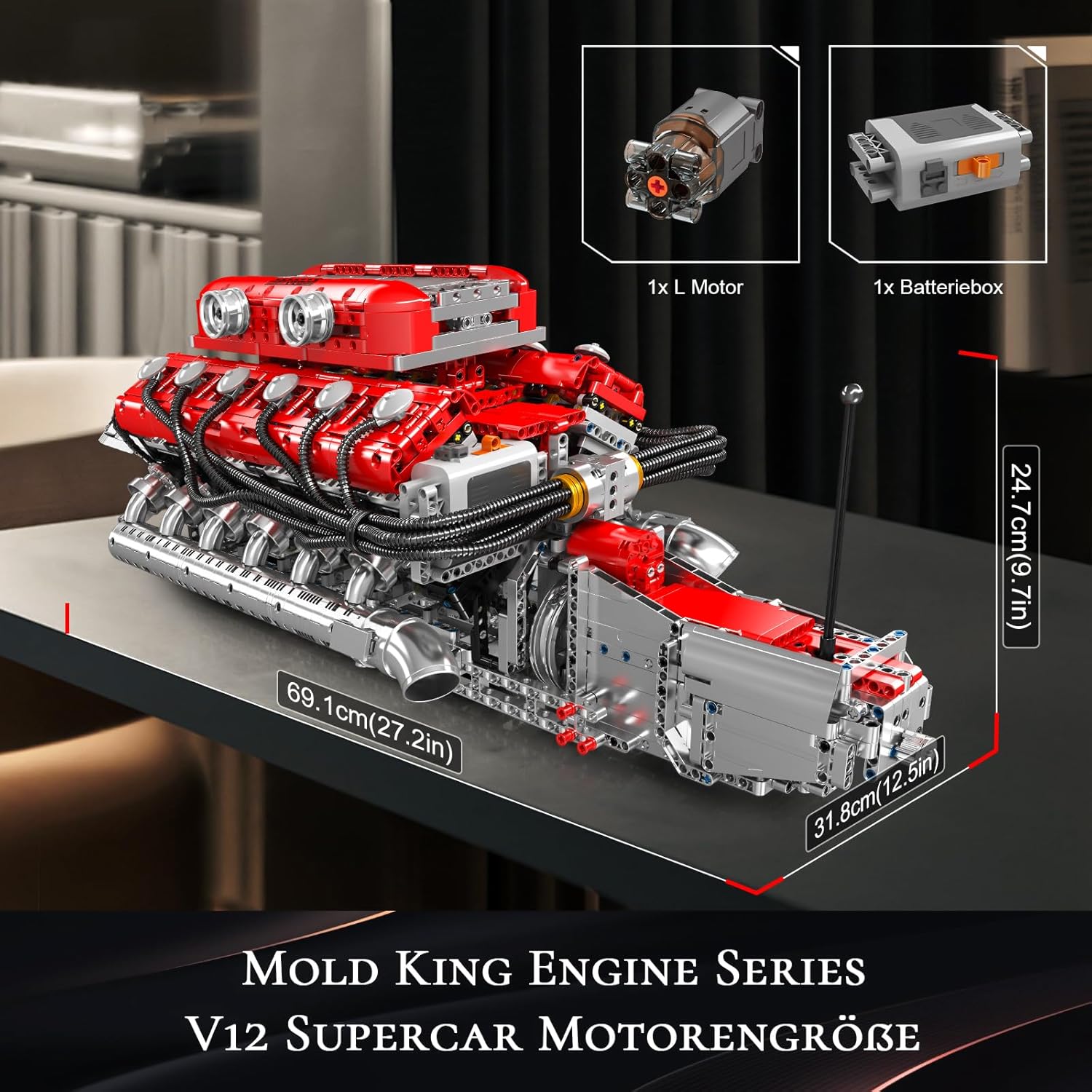 Mould King V12 Motorbausatz stellt die realen dynamischen Prinzipien im Maßstab 1:1 nach. Der V12 ist mit einem großen Elektromotor und einem Batteriekasten ausgestattet und bietet außergewöhnliche Leistung sowie blitzschnelle Beschleunigung. Er integriert speziell entwickelte Aerodynamikkanäle und ein Kühlsystem, um eine effiziente Motorleistung bei hohen Geschwindigkeiten zu gewährleisten. Dieses hochentwickelte Modell ist das perfekte Geschenk für Technikbegeisterte und bietet eine Kombination aus mechanischer Raffinesse und modernstem Design. 【Automodellbausatz-Spielzeug für Kinder und Erwachsene】 Dieser Bausatz ist ein tolles Spielzeug für Jungen und Mädchen zum Valentinstag/Geburtstag/Vatertag, insbesondere für Kinder, Jugendliche, Erwachsene ab 8, 9, 10, 12, 14 Jahren und älter. Speziell für Truck-Fans und -Liebhaber. Mould King 10169 Technik V12-Zylinder-Reihenbenzinmotor modell ist mit nummerierten Baubeuteln und einer Schritt-für-Schritt-Anleitung ausgestattet. Sie können dieses Set ganz einfach zusammenbauen, indem Sie der klaren Anleitung folgen. Während des Baus dieses LKW können Kinder ihr kreatives Denken fördern und ihre Fähigkeit zur Erkennung von Farbformen und zur Hand-Auge-Interaktion entwickeln. Auto Geschenk Bauklötze Bauen - Es ist eine wunderbare Aktivität zusammen mit Familie oder Freunden. Dieses Autobau-Spielzeug fördert die Hand-Augen-Koordination, das divergente Denken und die Problemlösungsfähigkeiten Ihres Kindes, inspiriert Kreativität und Gehirnentwicklung. Hilft Kindern, Zusammenarbeit und Teamarbeit zu lernen. Technik-Motor-Bausatz wird in einer farbenfrohen Geschenkverpackung geliefert und ist ein perfektes Spielzeug für Geburtstage, Kindertag, Weihnachten oder Neujahr.Das Set eignet sich hervorragend als Geschenk für Kinder, da es sowohl Spaß als auch technisches Verständnis fördert. Jedes Produkt wird vor dem Versand sorgfältig und gründlich geprüft, um sicherzustellen, dass es in einwandfreiem Zustand bei Ihnen ankommt. | قیمت یورویی : 152.14€