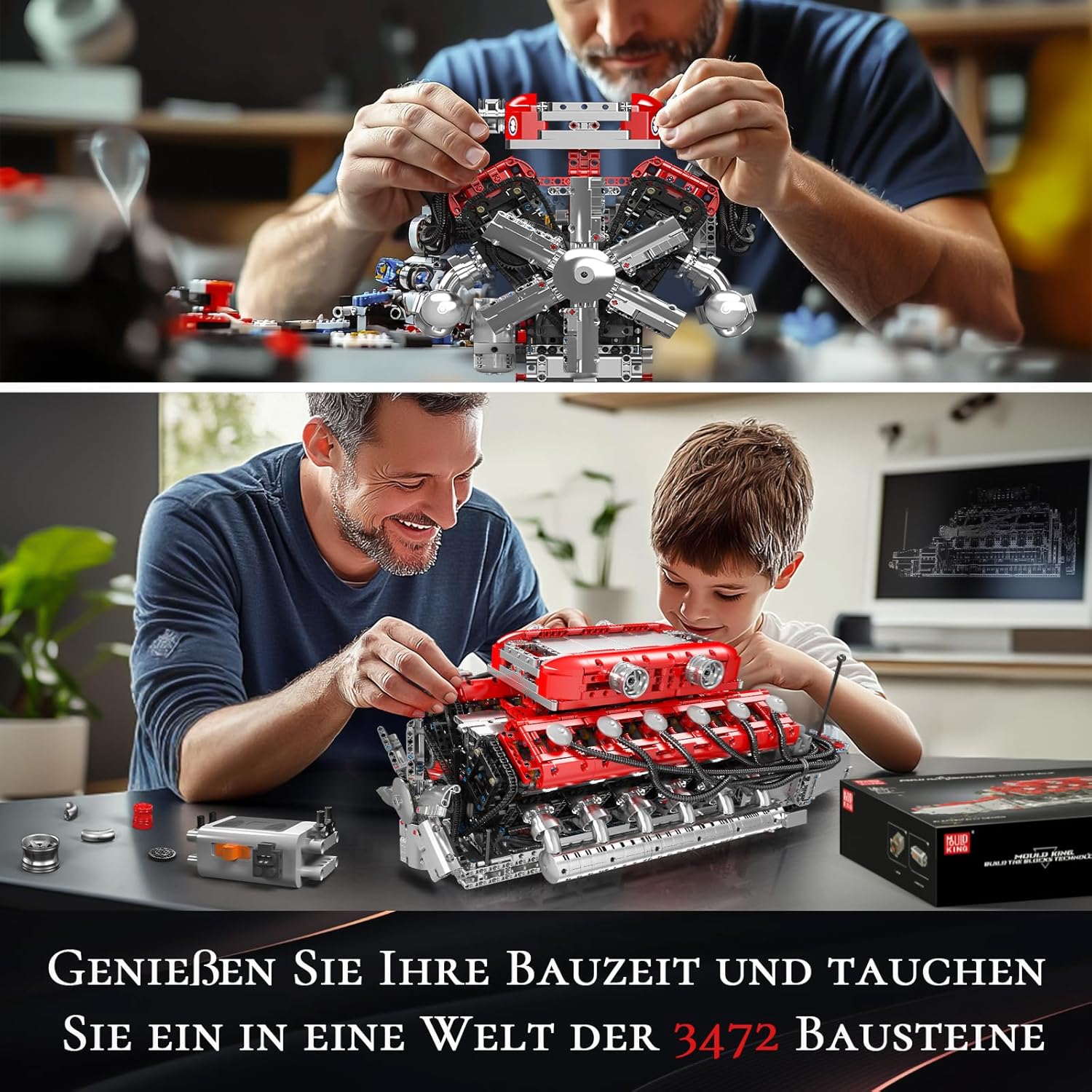 Mould King 10169 Technik V12 Motor Bausteine Spielzeug, 3472 Stück APP Engine Elektromotorantrieb Klemmbausteine Bausatz Spielzeug Geschenk für Erwachsene und Jungen 8+ | قیمت یورویی 152.14€