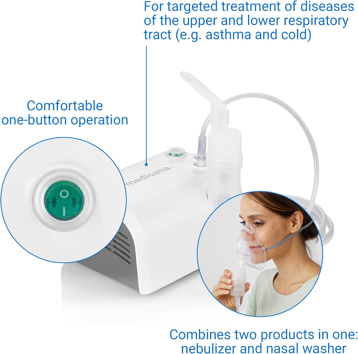 medisana IN 520 Inhalator, Inhalationsgerät mit Mundstück und Maske für Erwachsene und Kinder, Vernebler Inhaliergerät bei Erkältung oder Asthma mit extra viel Zubehör Umfangreiches Zubehör | قیمت یورویی 43.2€