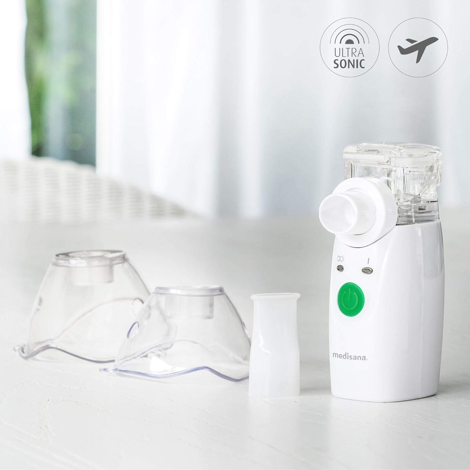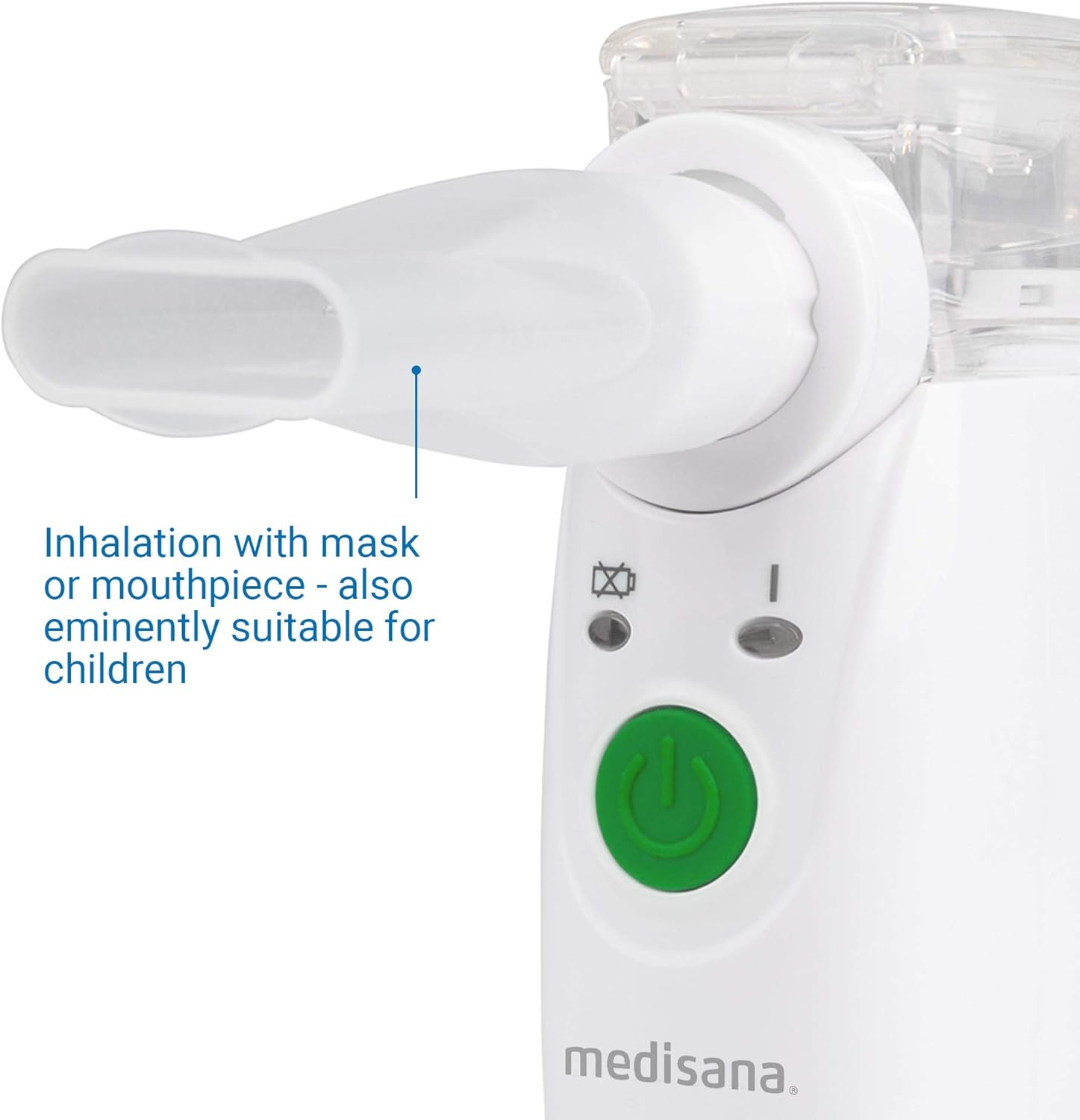 medisana IN 525 Inhalator für unterwegs, mobiles Inhalationsgerät mit Mundstück und Maske für Erwachsene und Kinder, Vernebler Inhaliergerät bei Erkältung oder Asthma mit extra viel Zubehör mit Ultraschall-Technologie | قیمت یورویی 56.99€