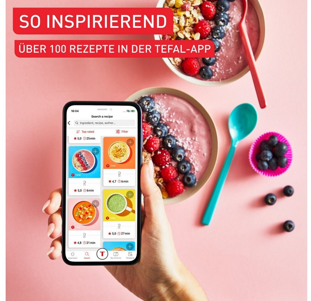 بسیار الهامبخش: به لطف بیش از ۱۰۰ دستور پخت گام به گام موجود در برنامه Tefal، هرگز ایدههایتان تمام نمیشود (یک کتاب دستور پخت دیجیتال با ۴۰ دستور پخت برای کشورهایی که برنامه Tefal را ندارند در دسترس است)