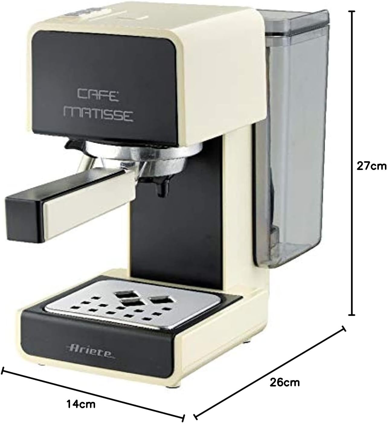 دستگاه Café Matisse از برند Ariete، با طراحی رترو و رنگ زیبا ، گزینهای خوشساخت برای تهیه اسپرسو، کاپوچینو و نوشیدنیهای گرم خانگی است.