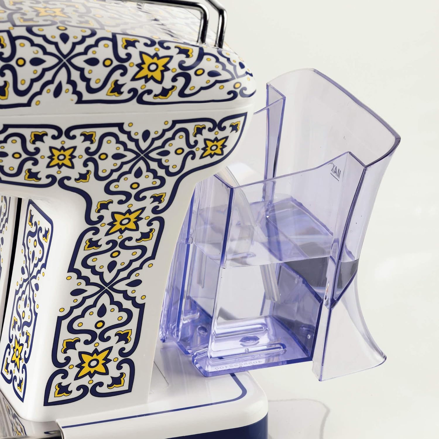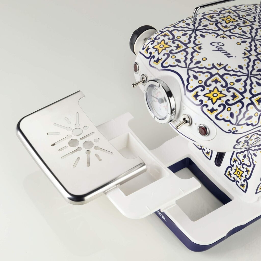 دستگاه اسپرسو ساز Ariete مدل Capri 1389/1C با طراحی خاص و گرافیکی روی بدنه سفید، تجربه ای دلنشین از تهیه قهوه در خانه را فراهم می کند.
