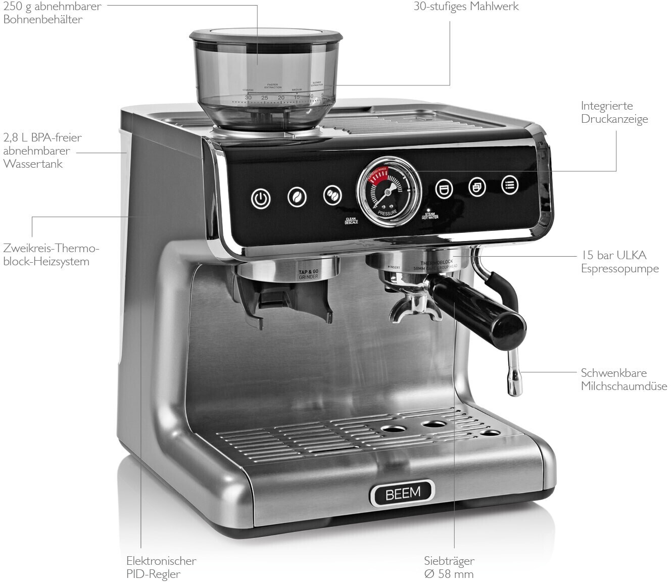 اسپرسو ساز بیم آلمان - مدل Beem Espresso Grind Profession ظرفیت 2.8 لیتر - دستگاهی قدرتمند به همراه آسیاب داخلی قهوه