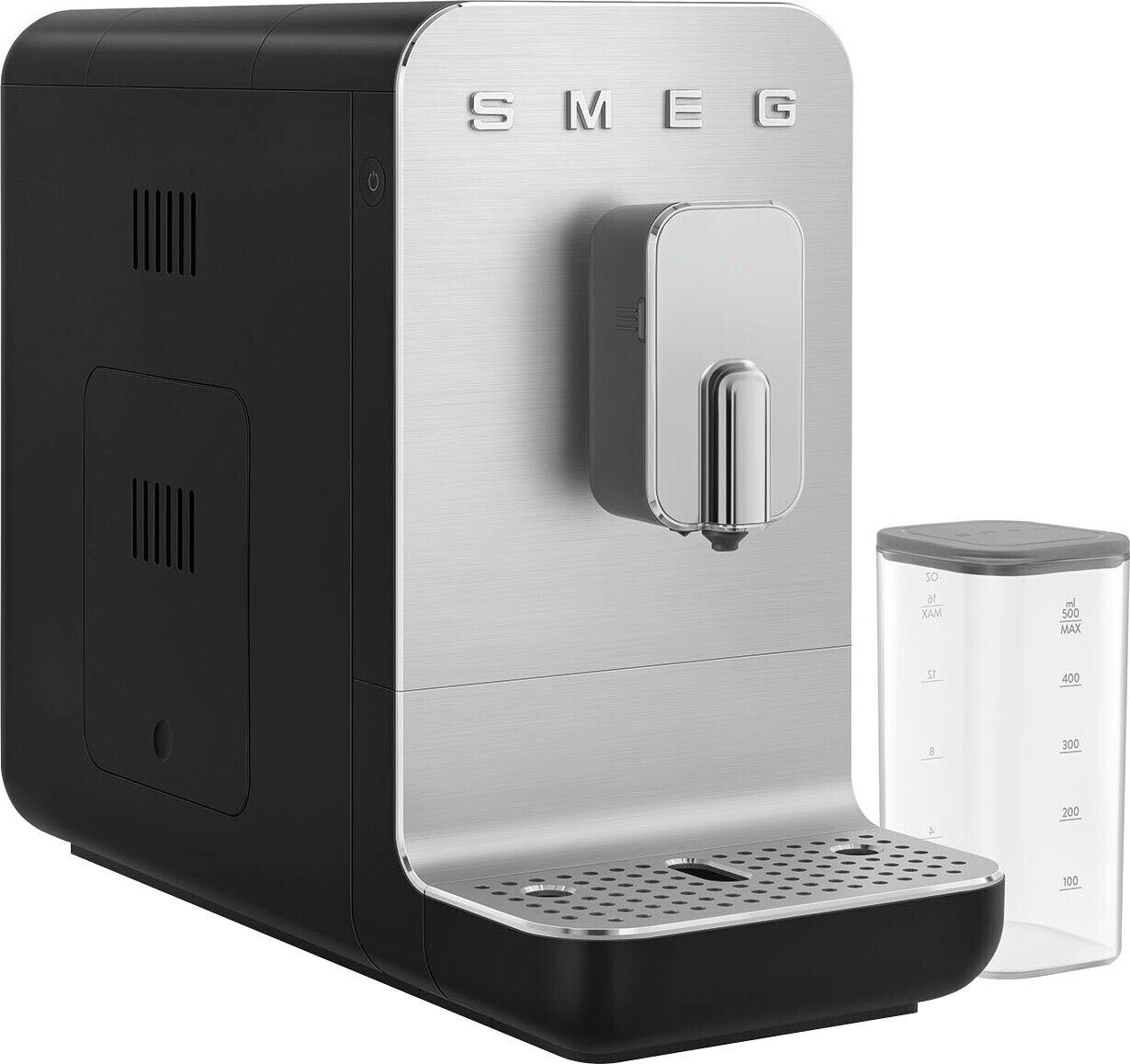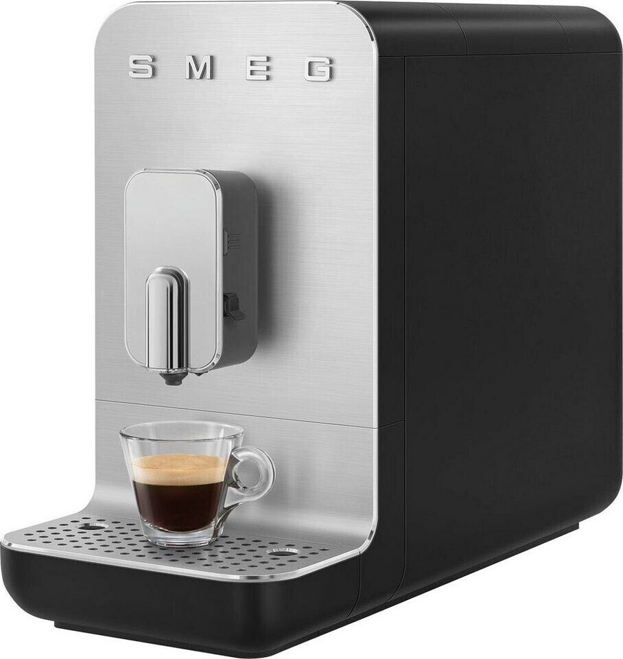 اسپرسو ساز تمام اتوماتیک SMEG مدل BCC13BLMEU با طراحی خاص دهه 50 میلادی، رنگ مشکی مات و سیستم شیر داخلی، انتخابی بینقص برای تجربه حرفهای تهیه قهوه در خانه است.
