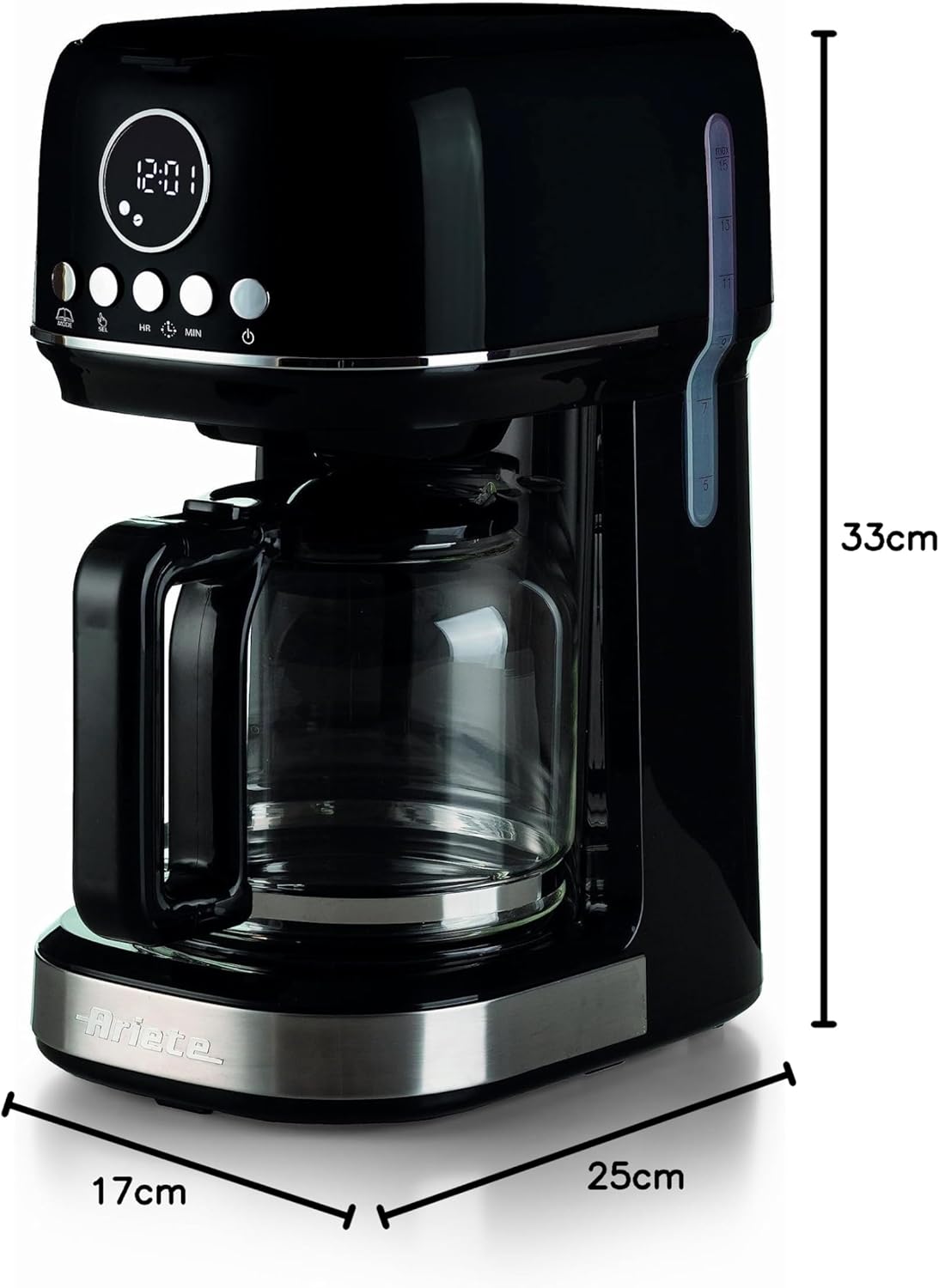 قهوهساز Ariete 1396 با ظرفیت تهیه ۱۵ فنجان قهوه، گزینهای مناسب برای خانوادهها یا محیطهای کاری است.