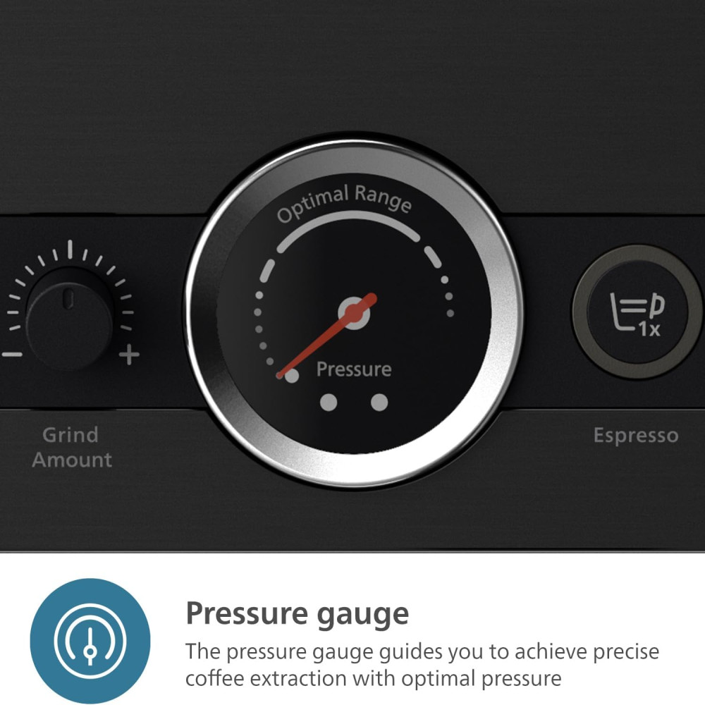 به لطف فشارسنج یکپارچه که وضعیت دم کردن را نشان میدهد و هنگام رسیدن به فشار مطلوب به شما اطلاع میدهد، به فشار آب دقیقی دست یابید.