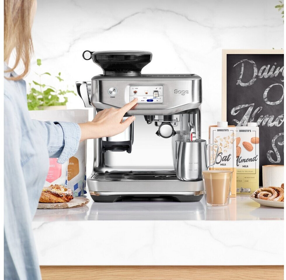 Sage SES882 The Barista Touch Impress دستگاهی پیشرفته با صفحه نمایش لمسی برای تهیه آسان اسپرسو و نوشیدنیهای قهوهای است. آسیاب داخلی و سیستم بخار قدرتمند از ویژگیهای برجسته آن میباشد.