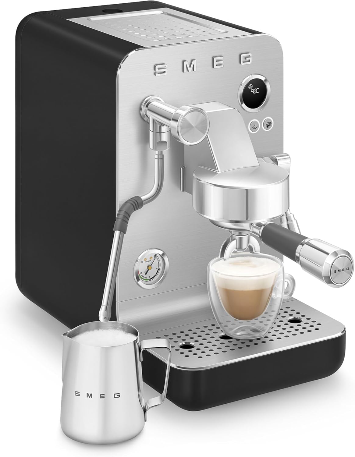 اسپرسو ساز نیمه اتوماتیک اسمگ مدل EMC02BLMEU، ترکیبی از طراحی خاص و عملکرد حرفهای برای تهیه قهوه در خانه است.