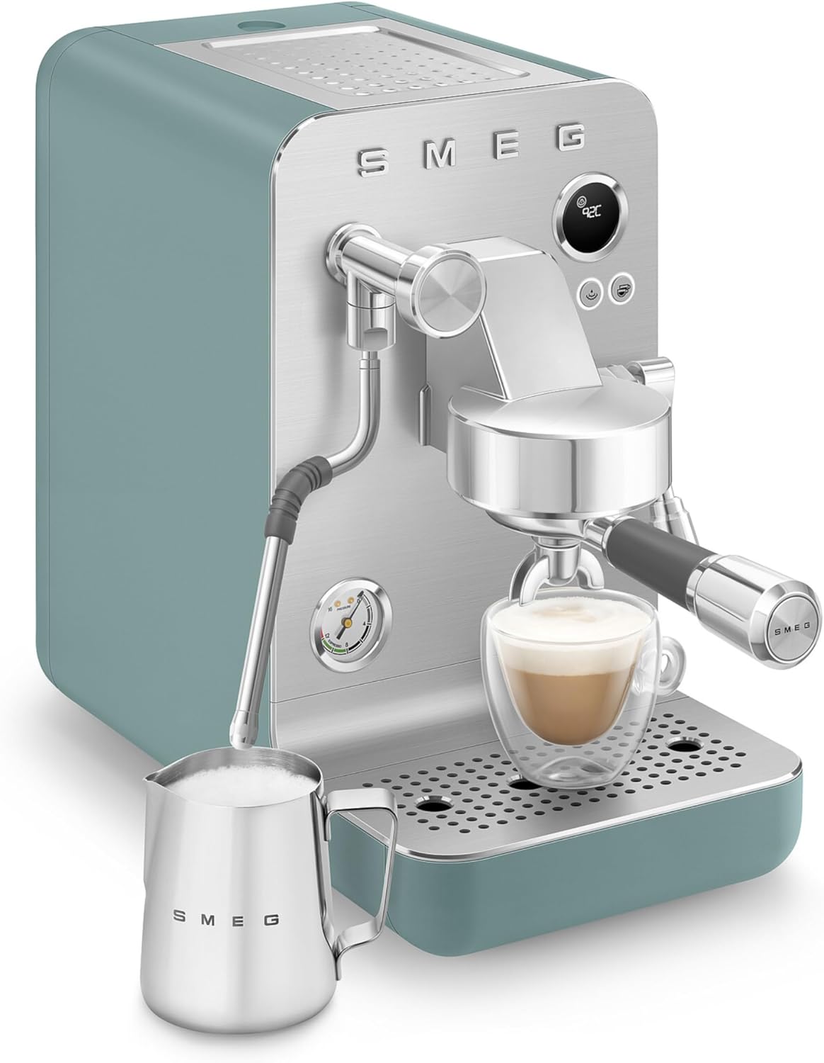 اسپرسو ساز نیمه اتوماتیک اسمگ مدل EMC02EGMEU، ترکیبی از طراحی خاص و عملکرد حرفهای برای تهیه قهوه در خانه است.