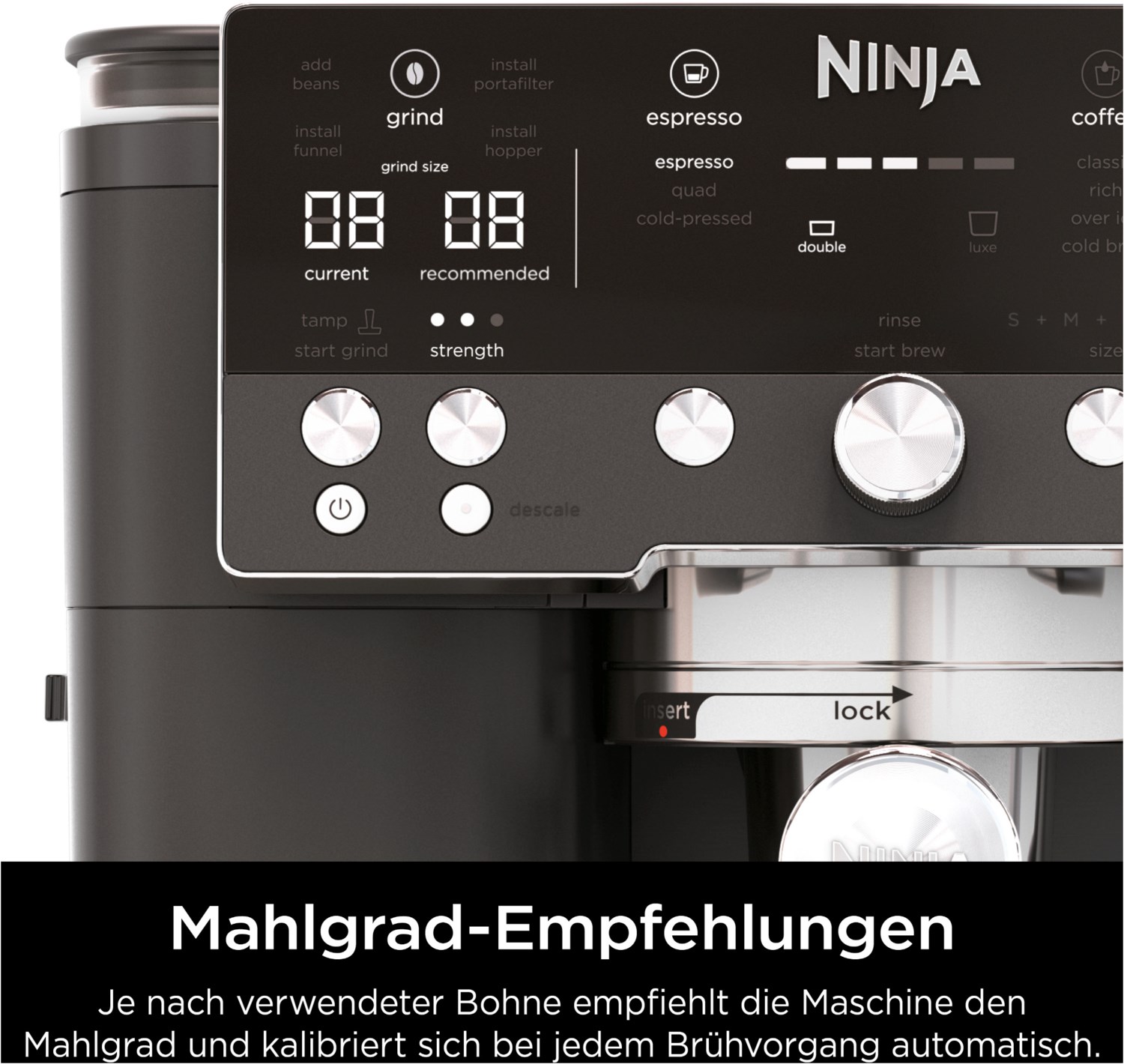 سینی فنجان قابل تنظیم: سینی در سه ارتفاع مختلف قابل تنظیم است یا حتی میتوان آن را به طور کامل جدا کرد تا فنجانهای اسپرسو و همچنین لیوانهای مسافرتی بزرگتر را در خود جای دهد. طراحی آن همچنین چکهها و پاششها را به حداقل میرساند.