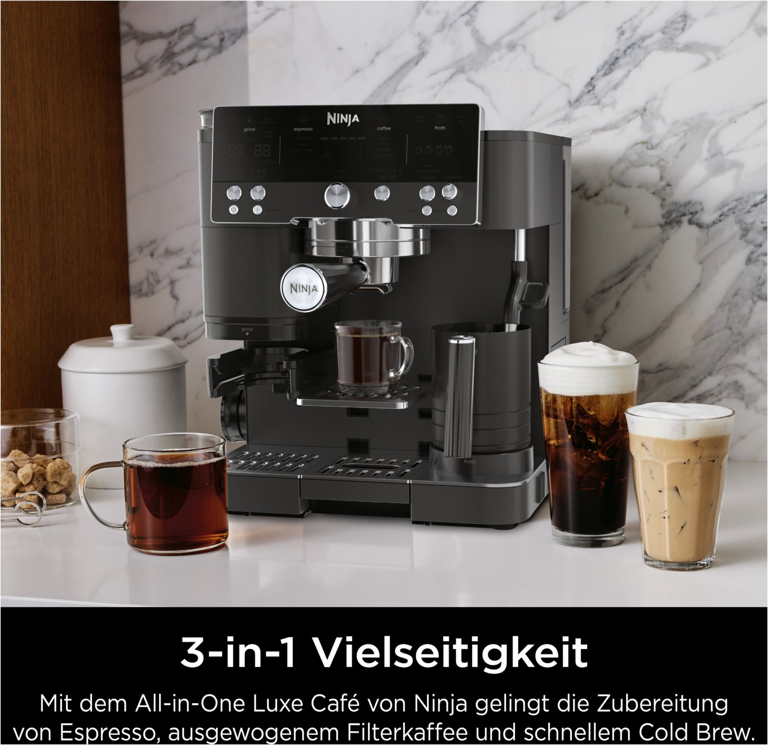 با Luxe Café Premier، قهوهساز نینجا که به شما کمک میکند نوشیدنیهایی با کیفیت باریستا را در عرض چند دقیقه آماده کنید، آشنا شوید. این قهوهساز همهکاره ۳ در ۱ برای اسپرسو، دمسرد و قهوهچکانی، تمام عدم قطعیتهای آمادهسازی قهوه را از بین میبرد و شامل یک آسیاب داخلی برای راحتی بیشتر است. به راحتی انواع قهوههای مورد علاقه خود را - از فلت وایت گرفته تا لاته - ایجاد کنید.