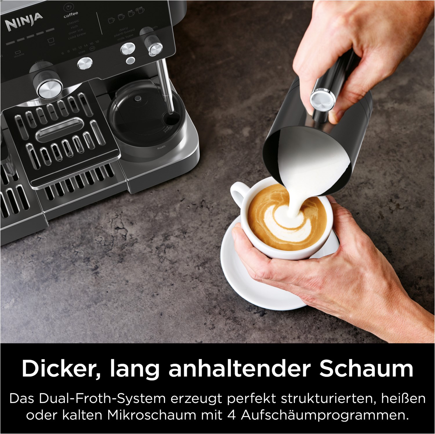 کف کردن شیر را به متخصصان بسپارید. از کف کاملاً بافتدار و ماندگار شیر گاو یا جایگزینهای شیر گیاهی با حداقل تلاش لذت ببرید. سیستم کف دوگانه نینجا، مقدار ایدهآل بخار و کف بهینه را در پارچ شیر استیل ضد زنگ با استفاده از یک همزن قابل جدا شدن ترکیب میکند.