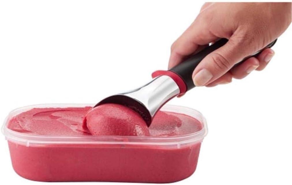اسکوپ بستنی تفال Ingenio K20722 | ایده آل برای تقسیم آسان بستنی | پلاستیک | مشکی/قرمز | چشمی برای آویزان | قابل شستشو در ماشین ظرفشویی، 25.5 x 4.7 x 5.5 سانتی متر