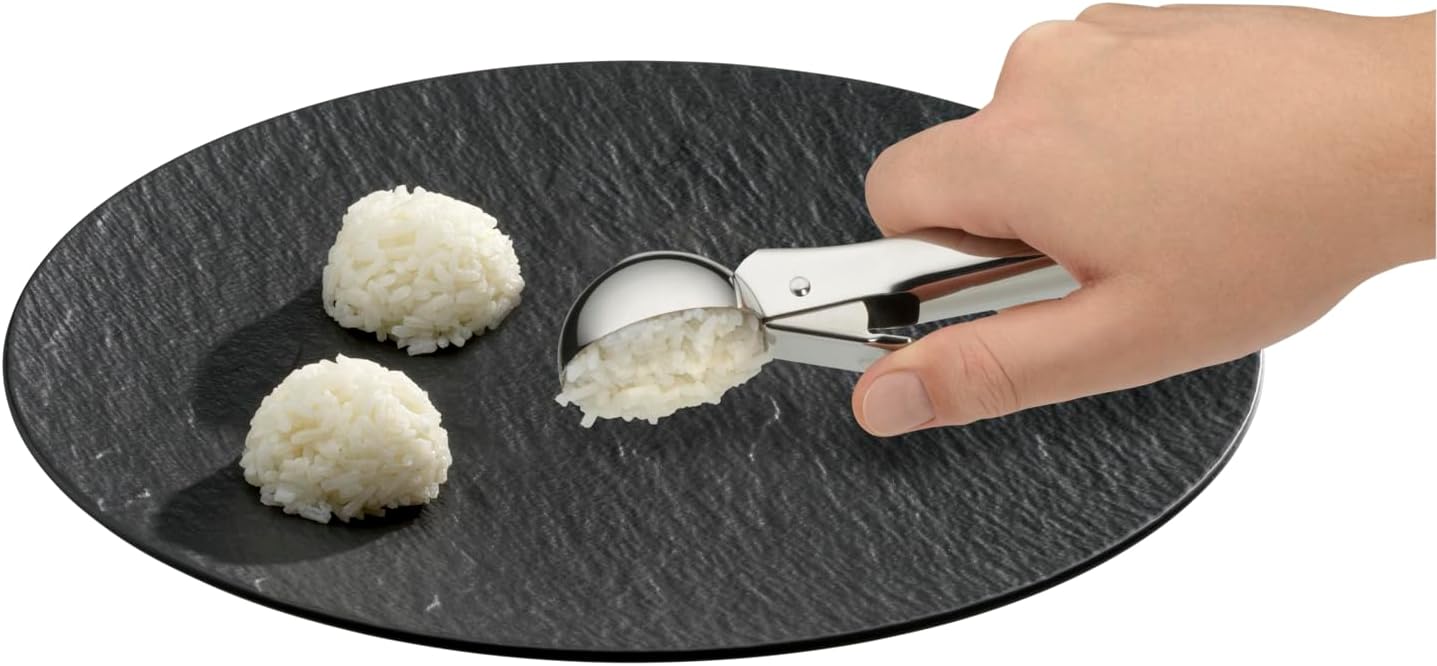 Inhalt: 1x Eisportionierer mit Auswerfer (18 x 5 x 2,8 cm) - Artikelnummer: 1880299990 Material: Cromargan Edelstahl Rostfrei 18/10, poliert - spülmaschinengeeignet, pflegeleicht, lange haltbar, geschmacksneutral und säurefest Ganz schnell und einfach Eiskugeln aus dem Handgelenk portionieren - auch für sehr hartes Eis geeignet. Er kann von Rechts- und Linkshänder benutzt werden Durch den Auswerfer bleibt selbst hartes Eis nicht am Eiskugelportionierer kleben. Ein Druck auf den Auswerfer und das Eis kann immer in einer schön geformten Kugel serviert werden Der Eis Portionierer eignet sich auch ideal zum Portionieren von Reis, Fruchtjoghurt, Kuchen- und Keksteig, Melonenkugeln, Kartoffelpüree oder auch Fleischklößchen | قیمت یورویی : 12.64€