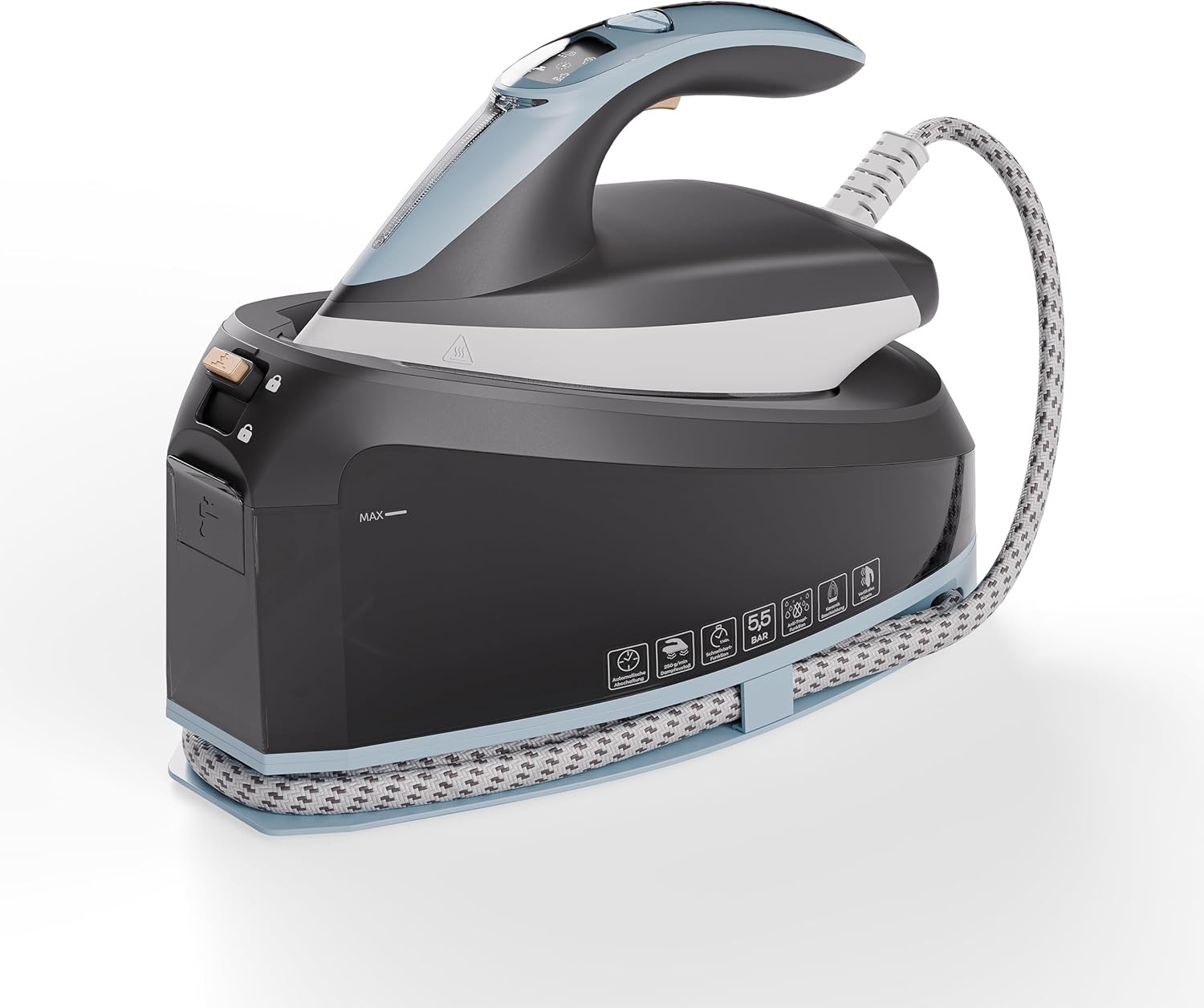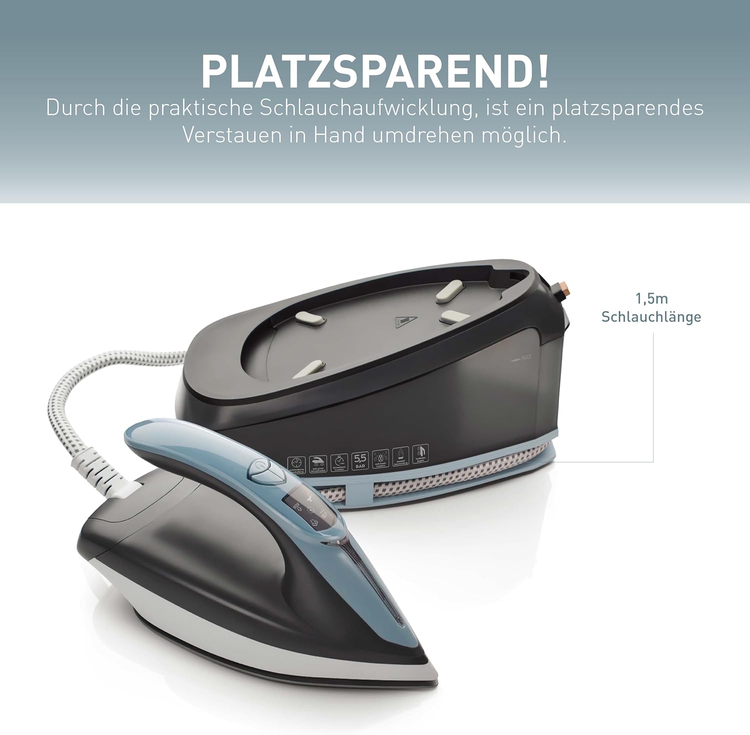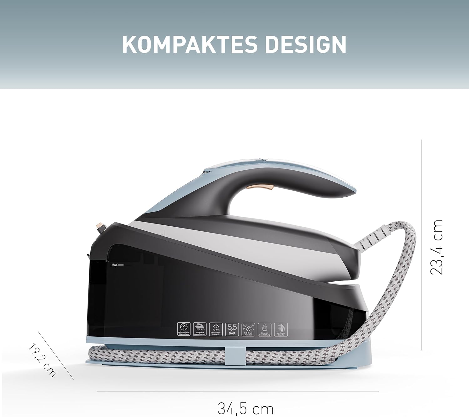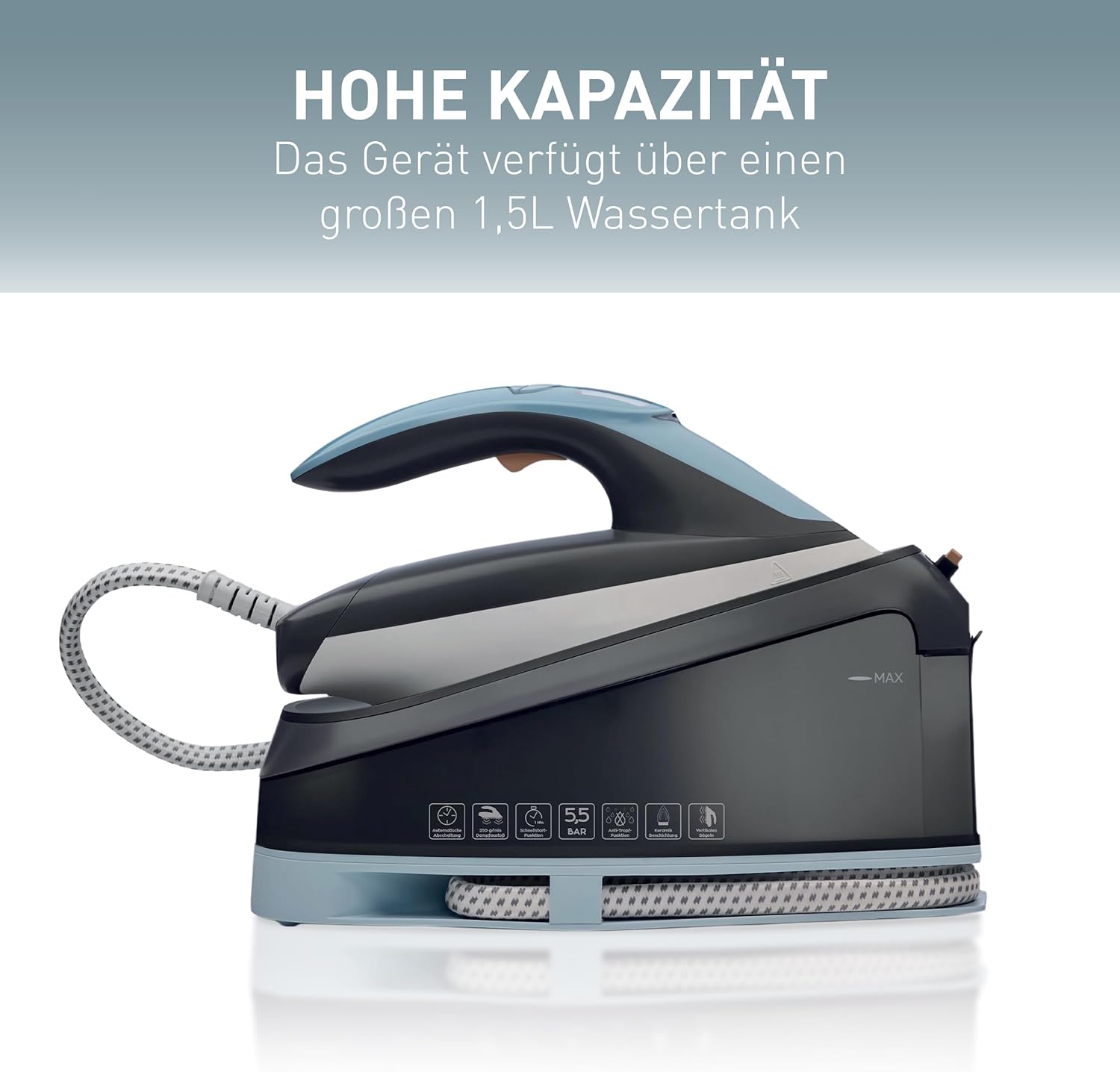 HEINRICHS Dampfbügelstation, 250 g/min Dampfstoß, 5,5 Bar Druck, 3 Funktionen, integriertes Display, großer 1,5 L Wassertank, Keramikbügelsohle, Selbstreinigungsfunktion, 3200 W Leistung, Schwarz-Blau | قیمت یورویی 79.99€