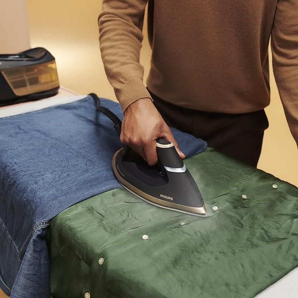 ایستگاه اتو بخار Philips PerfectCare 6000 - 2400 وات، تقویت بخار 600 گرمی، 8 بار، فناوری OptimalTEMP، مخزن آب 1.8 لیتری، مشکی/طلایی (PSG6064/80)