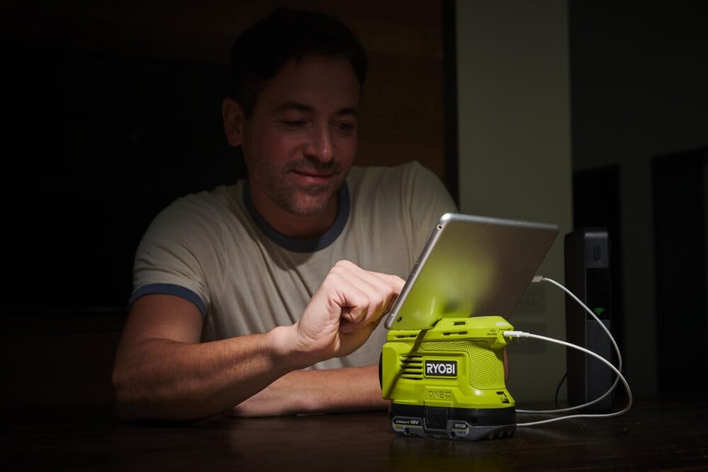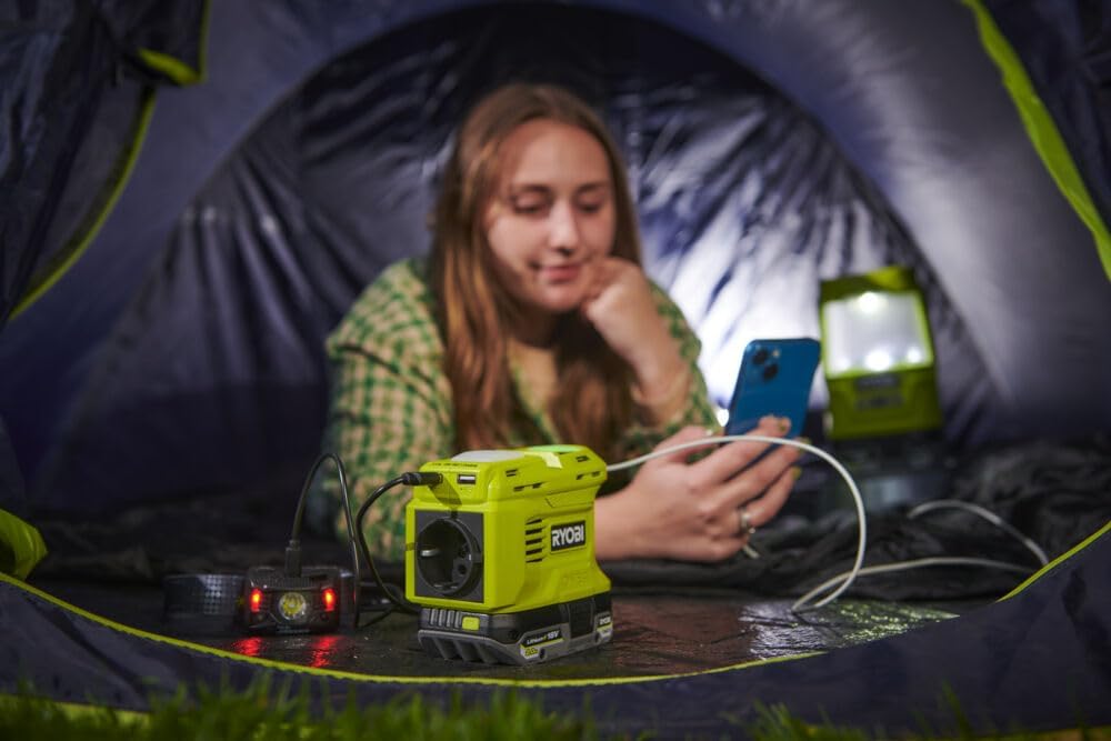 150-Watt-Wechselrichter für Camping und Reisen 2 USB-A-Anschlüsse, 1 USB-C-Anschluss Mit LED-Beleuchtung Kompatibel mit RYOBI-Solarmodulen Basisgerät (ohne Akku und Ladegerät) | قیمت یورویی : 108.78€
