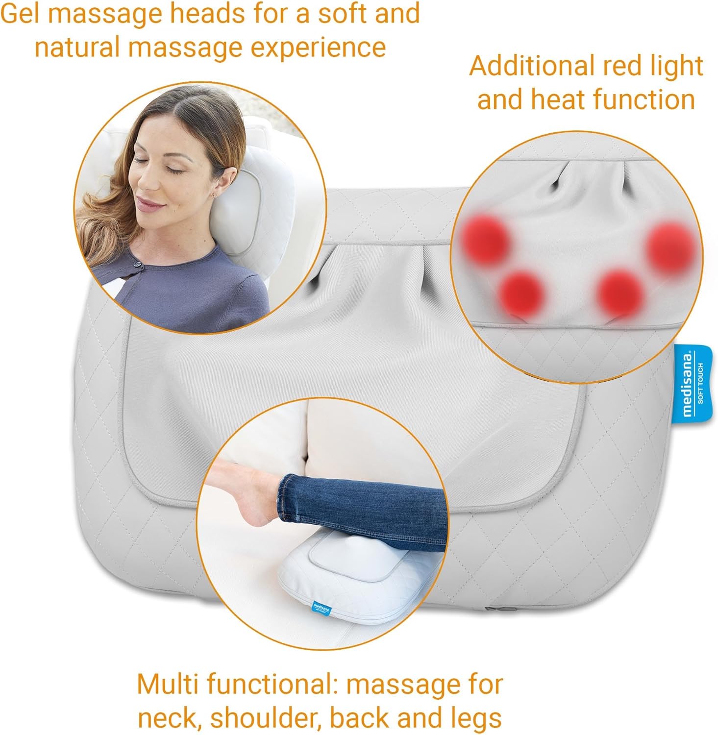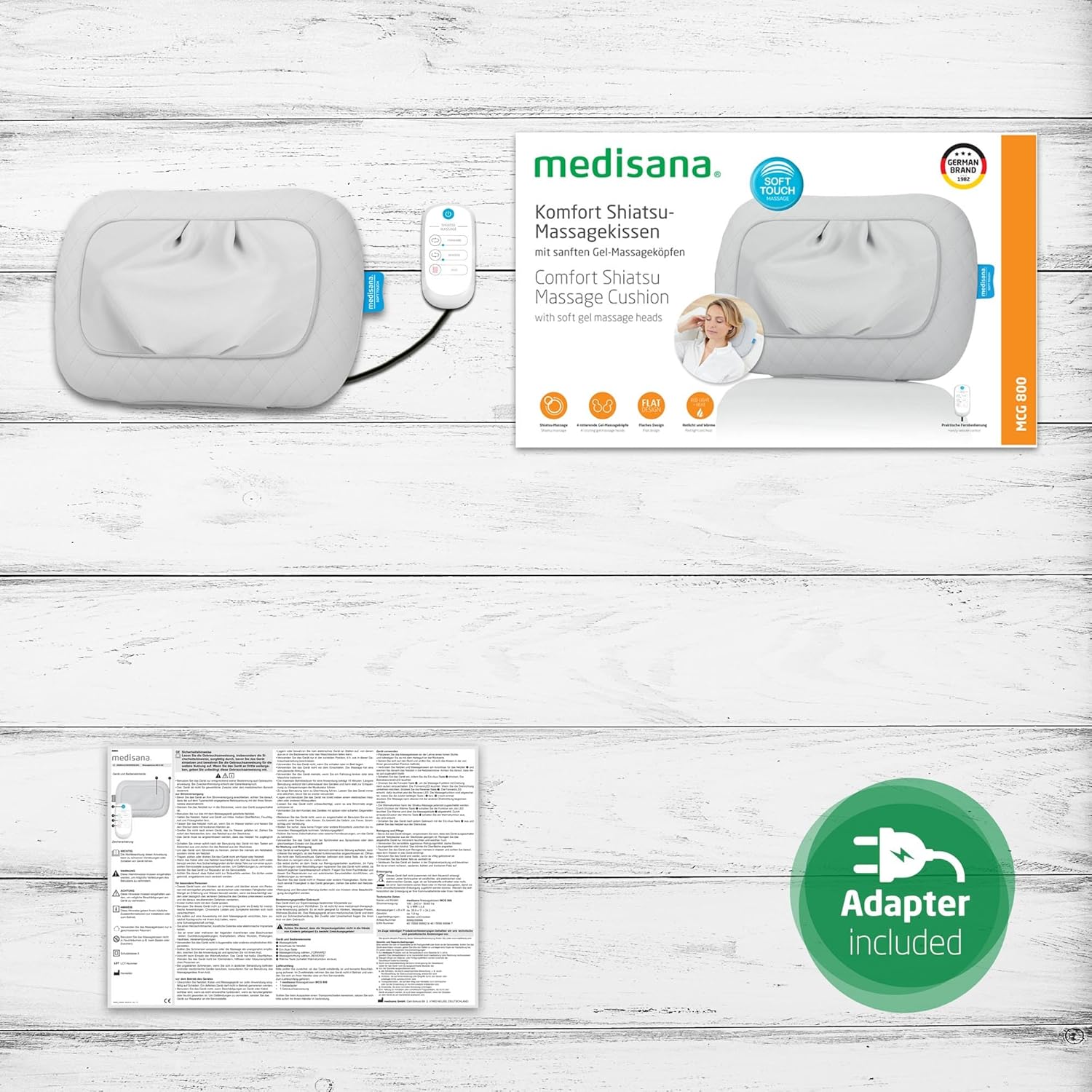 بالشتک ماساژ ژلی مدیسانا MCG 800، ماساژور با عملکرد حرارتی، ایدهآل برای گردن، شانه، کمر و پاها، شامل عملکرد نور قرمز، تثبیت صندلی کاربردی، 4 سر ماساژ ژلی چرخشی