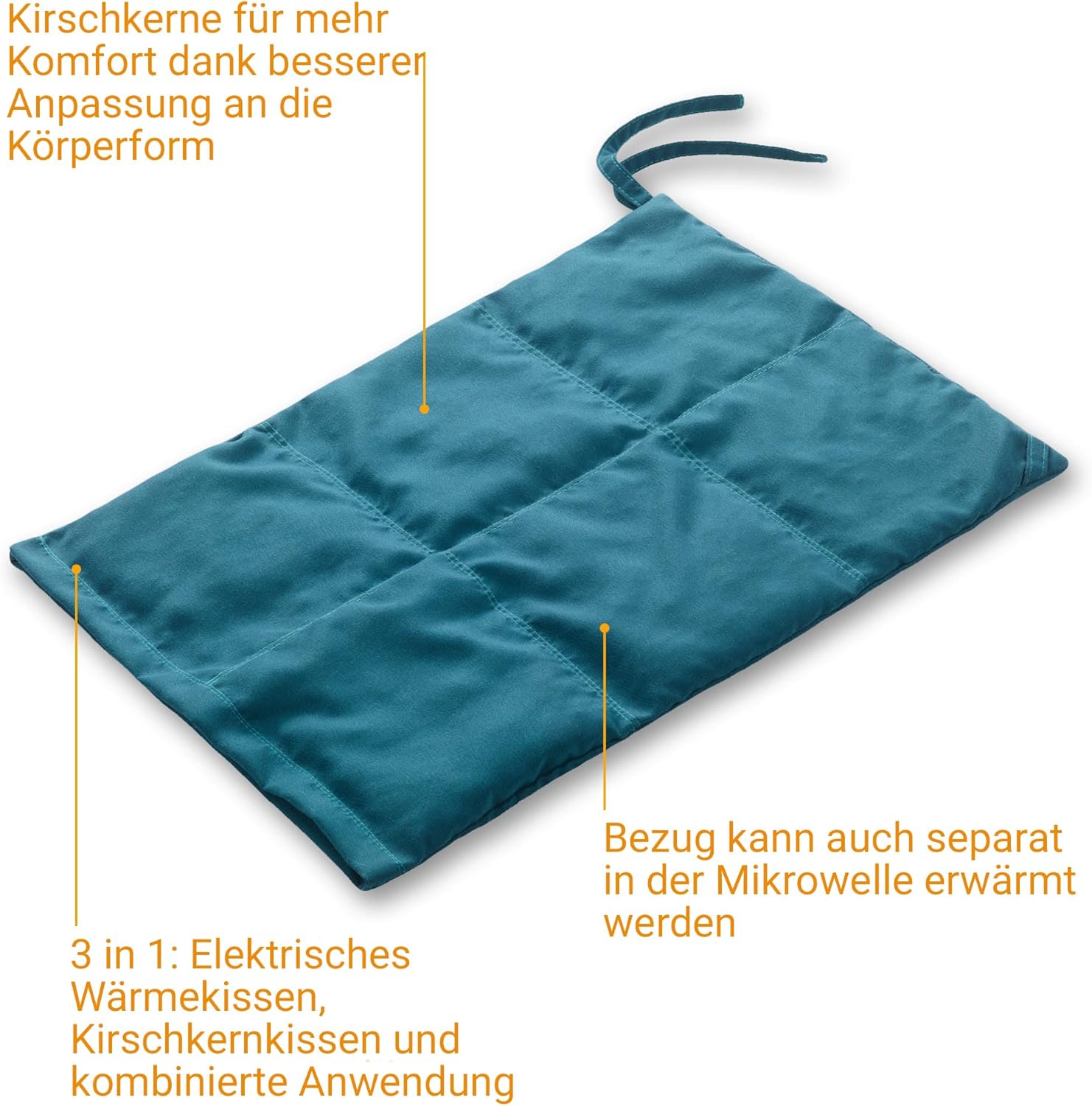 Vielseitige Anwendungsmöglichkeiten: Unser Kirschkernkissen kann variabel im Nacken, Schulter und Rückenbereich eingesetzt werden um Verspannungen und Schmerzen vorzubeugen Wohltuend: Jeder kennt sie. Kirschkernkissen sind ein praktischer Helfer für jeden Haushalt. Kirschen dienen nicht nur als Kälte- und Wärmespeicher sondern sorgen zugleich für einen wohltuenden Massageeffekt und passen sich perfekt an die Körperkontur an Funktional: Das Heizkissen ist mit 4 Temperaturstufen ausgestattet um jedem Bedürfnis gerecht zu werden. Außerdem ist das Kirschkernkissen mit einer Abschaltautomatik ausgestattet, die das Kissen nach 90 Minuten ausschaltet Verbessertes Wärmeerlebnis: Durch die langanhaltende und gespeicherte Wärme ist eine längere Wärmeabgabe gewährleistet. Der Bezug aus 100% Baumwolle und sorgt für einen zusätzlichen Komfort Sie haben die Wahl: Sie können das Wärmekissen nicht nur an der Steckdose einschalten und aufwärmen lassen. Das Kirschkernkissen ist zusätzlich separat in der Mikrowelle aufwärmbar Bitte beachten Sie, dass es länger dauern kann damit die Wärme auf der Außenseite des Bezuges zu spüren ist Hinweis: Das Gerät kann von Kindern, die älter als 3 Jahre und jünger als 8 Jahre sind, unter Aufsicht und mit immer auf den minimalen Temperaturwert eingestellter Steuerung benutzt werden | قیمت یورویی : 39.99€