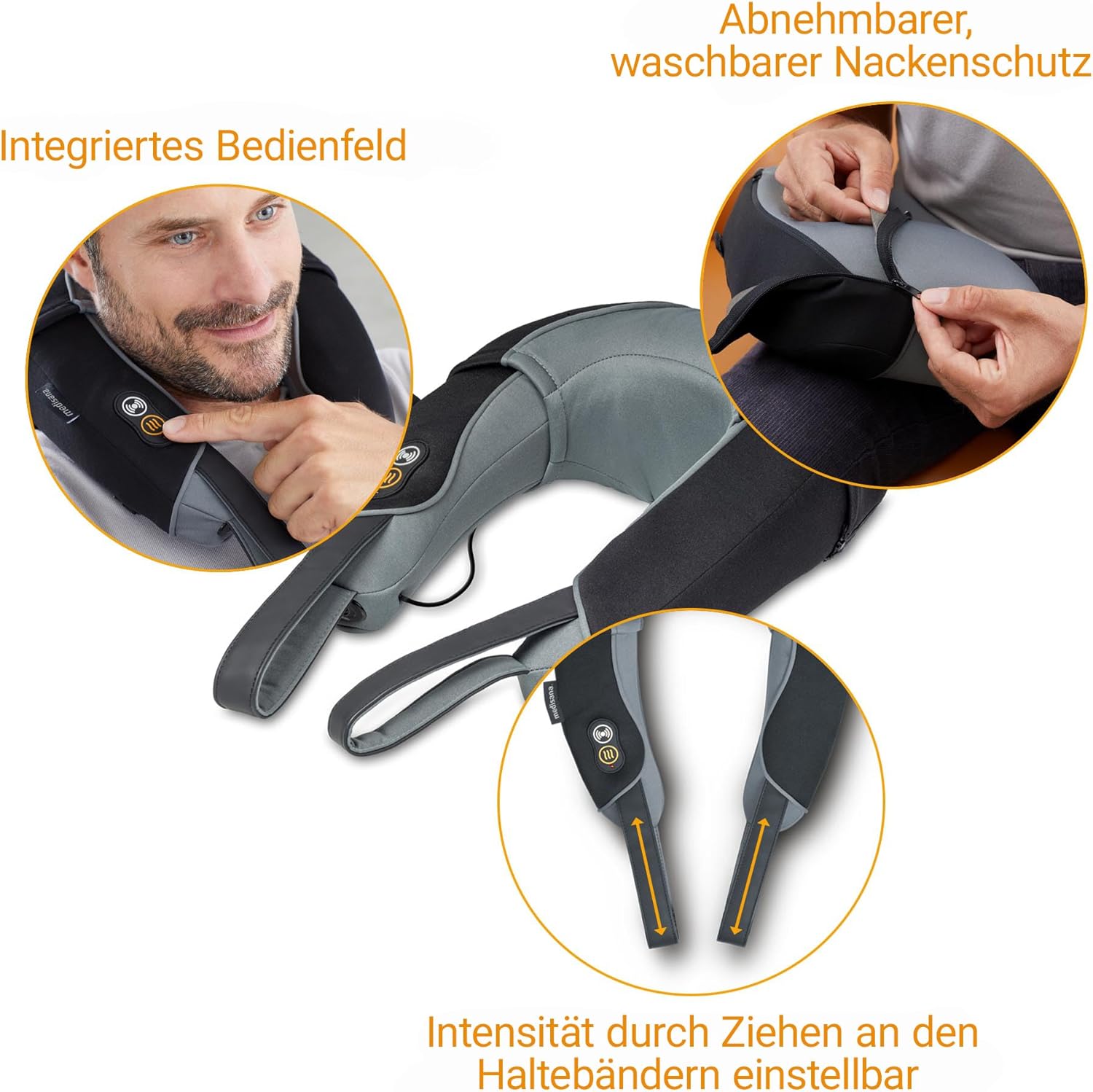 Vibrationsfunktion: Das NM 868 Nackenmassagegerät ist mit einer angenehmen Vibrationsmassage ausgestattet, bei dem Sie zwischen 2 Intensitätsstufen auswählen können Ideal auf Reisen: Unser Nackenmassagegerät kann neben dem Netzstecker auch mit Batterien betrieben werden. Somit eignet es sich ideal für Unterwegs oder auf Reisen. Der neue abnehmbare Nackenbezug lässt sich nun leichter reinigen Wärmer als zuvor: Unser Nackenmassagegerät ist mit einer verbesserten Wärmefunktion ausgestattet, die zusätzlich hilft, Spannungen der Muskulatur im Nacken- und Schulterbereich abzubauen Variabel: Das NM 866 Nackenmassageräterlaubt auch einen flexiblen Einsatz an weiteren Körperstellen, zum Beispiel an Rücken, Bauch, Ober- und Unterschenkel Nacken und Schultermassage: Mithilfe der Halteschlaufen nehmen Sie die Stärke der Massage selber in die Hand. Je fester Sie ziehen desto stärker ist das Massageerlebnis | قیمت یورویی : 33.23€