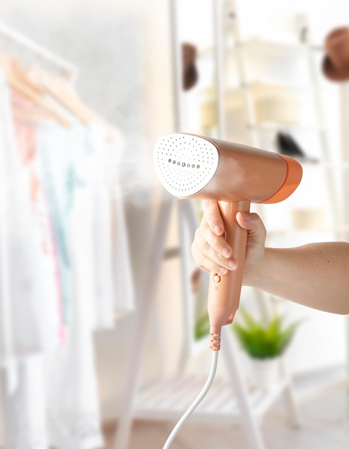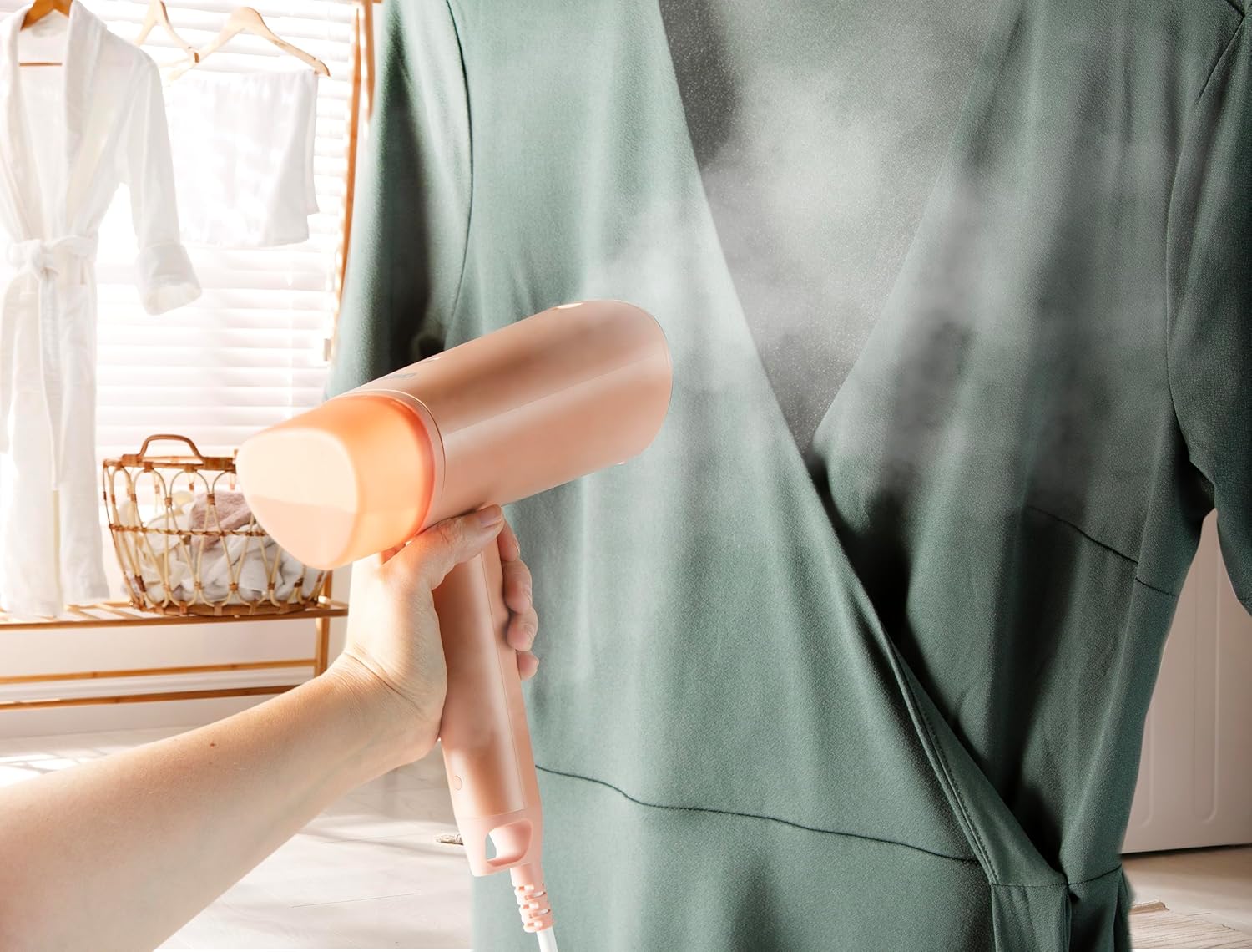 DOMO DO7058S Dampfglätter für Kleidung klappbar - Quick Start 25 Sekonden - Tragbare Steamer für Kleidung - 20g/min Dampf - 100ml Wassertank - Rosa Peach | قیمت یورویی 39.9€