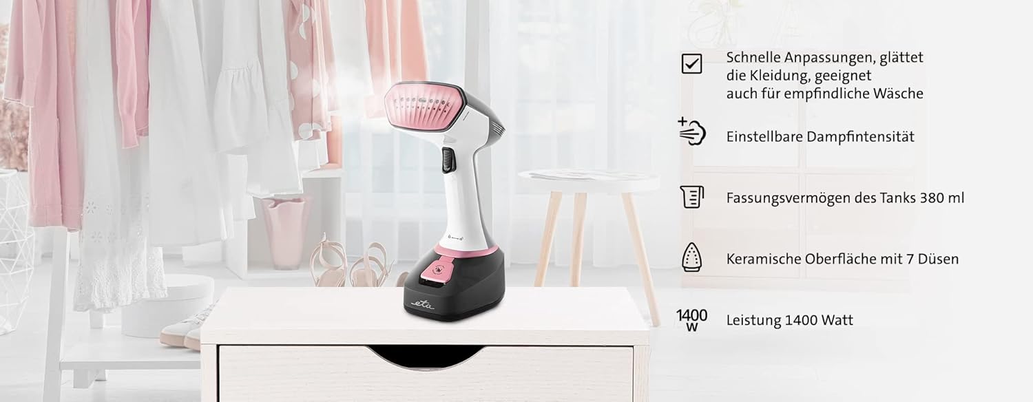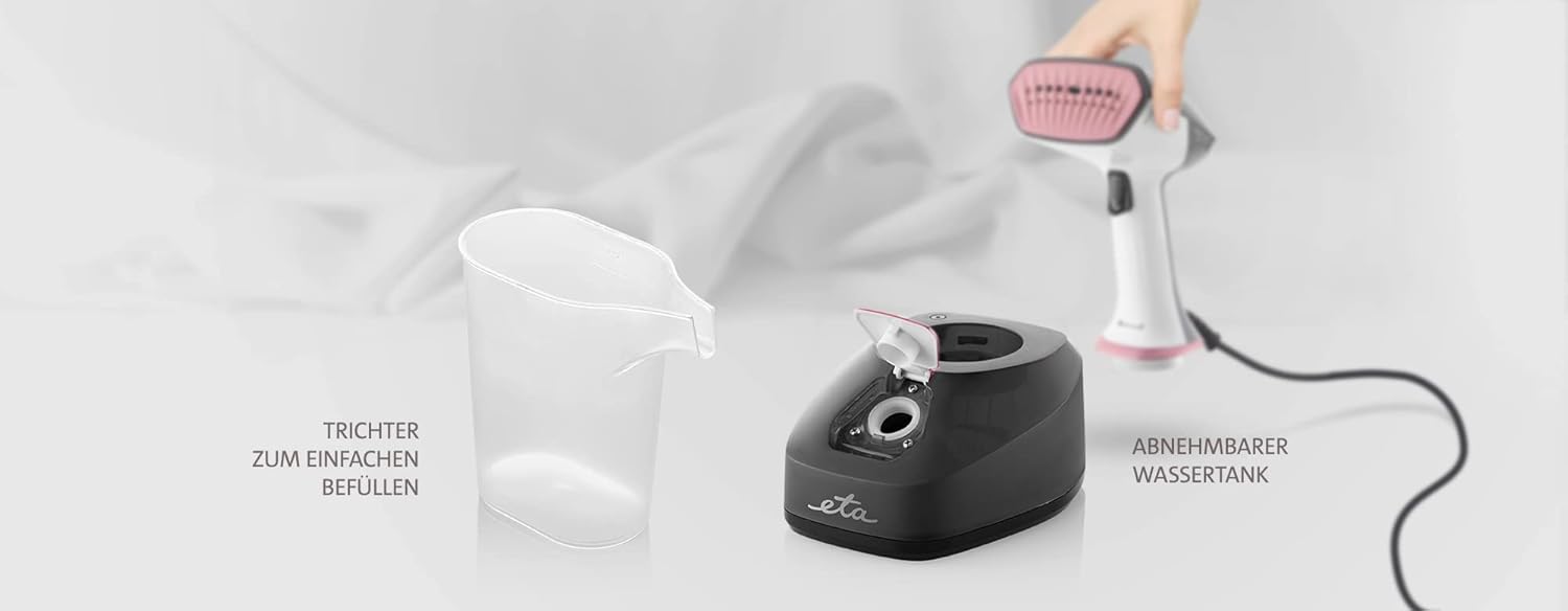 ETA Handsteamer für Kleidung Stephany - 1400W, 380ml Wassertank, Keramische Oberfläche mit 7 Düsen, Einstellbare Dampfintensität | قیمت یورویی 52.94€