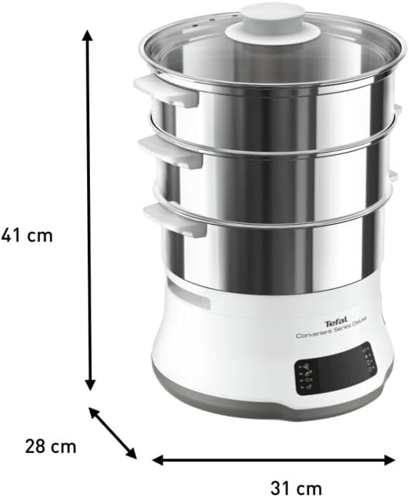 Tefal VC502D Convenient Series Deluxe Dampfgarer | einfacher Touchscreen | 8 Programme | Garen auf 3 Ebenen | Behälter aus Edelstahl | langlebige Qualität | gesunde Zubereitung | Edelstahl/Weiß | قیمت یورویی 153.54€