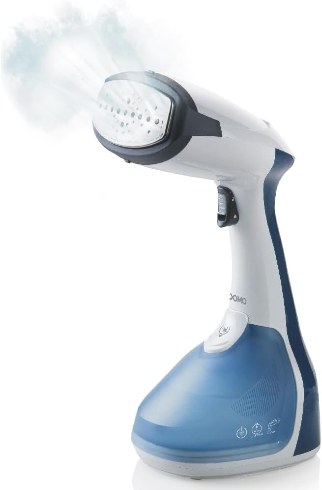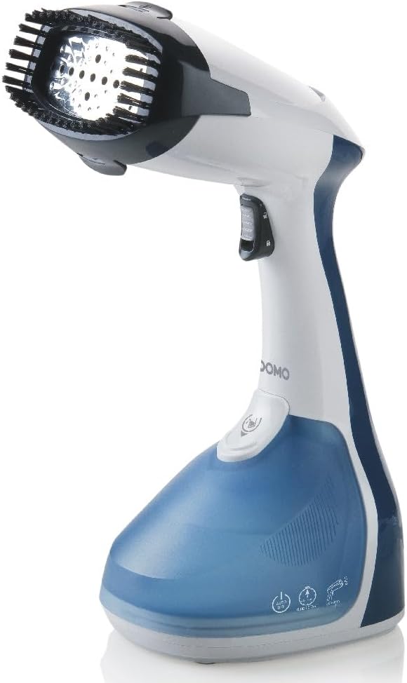 Domo DO7056S Bekleidungsdämpfer Dampfbürste, Blau-weiß لینک آمازون : https://www.amazon.de/dp/B07HXLB4FP?th=1&psc=1 ایدهآل برای از بین بردن چین و چروک و تازه کردن لباسها، پردهها و غیره. بدون نیاز به میز اتو، آن را برای دانشجویان یا مسافران ایدهآل میکند. از بین برنده باکتریها و گرد و غبار از روی انواع پارچه شروع سریع: ۴۵ ثانیه بخاردهی مداوم 30 گرم در دقیقه مخزن آب قابل جدا شدن: ۲۵۰ میلیلیتر دکمه بخار از جنس استیل ضد زنگ خاموش شدن خودکار پس از ۱۵ دقیقه. رفع موهای زائد ۲۳۰ ولت - ۵۰ هرتز -۱۳۷۰-۱۶۴۰ وات
