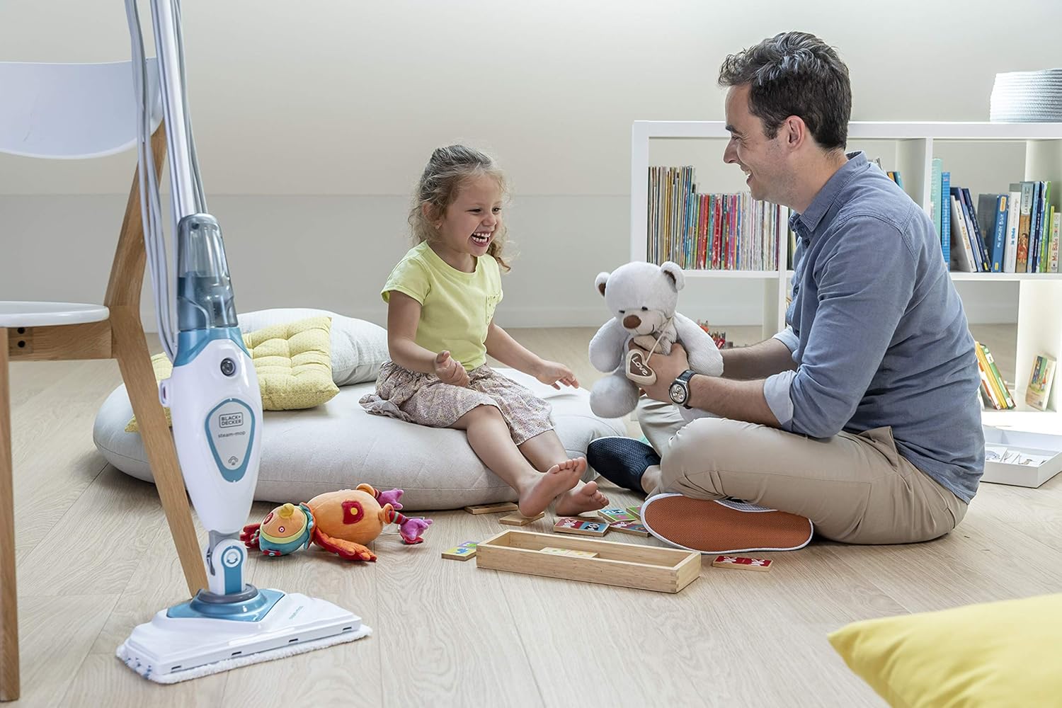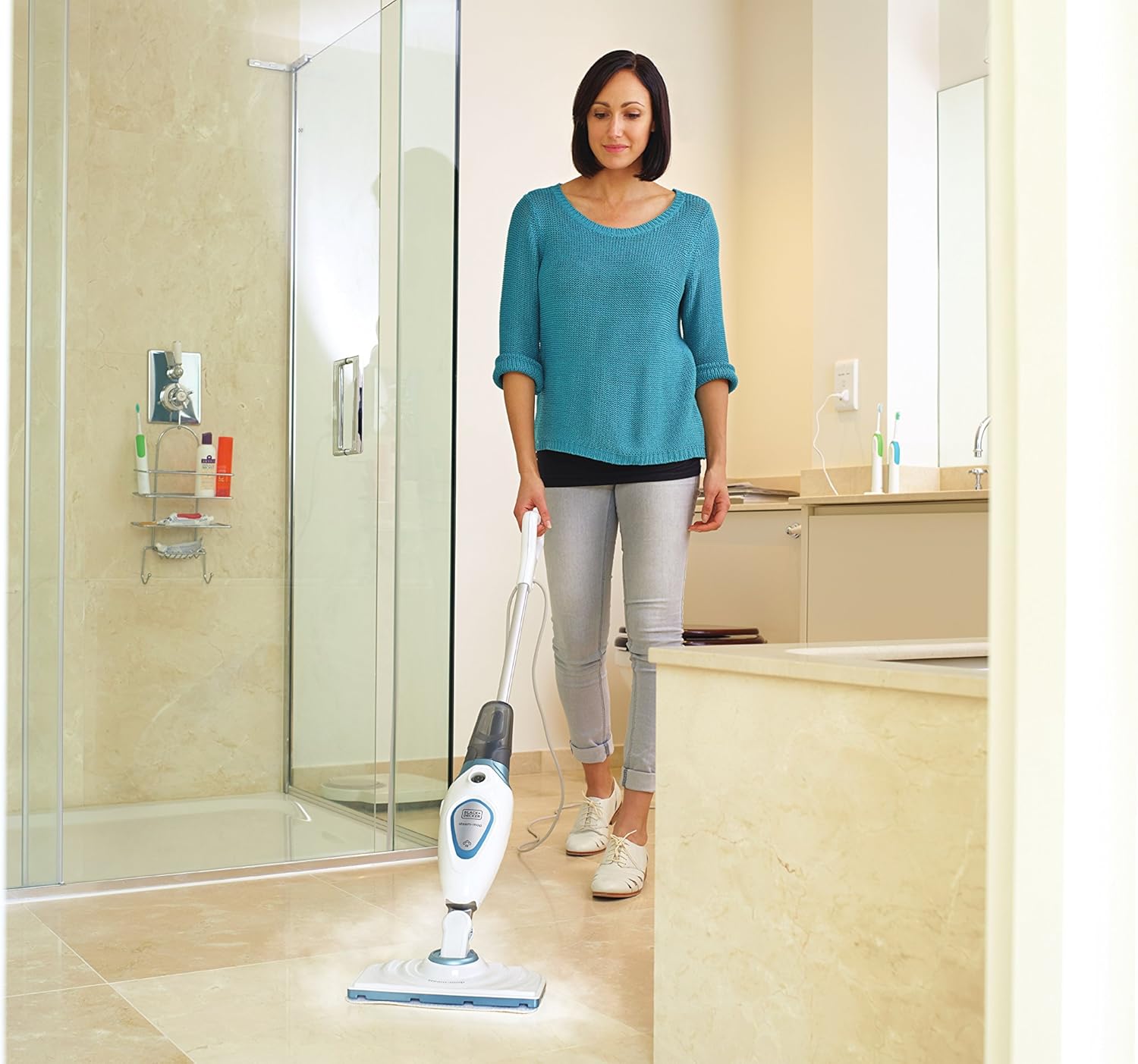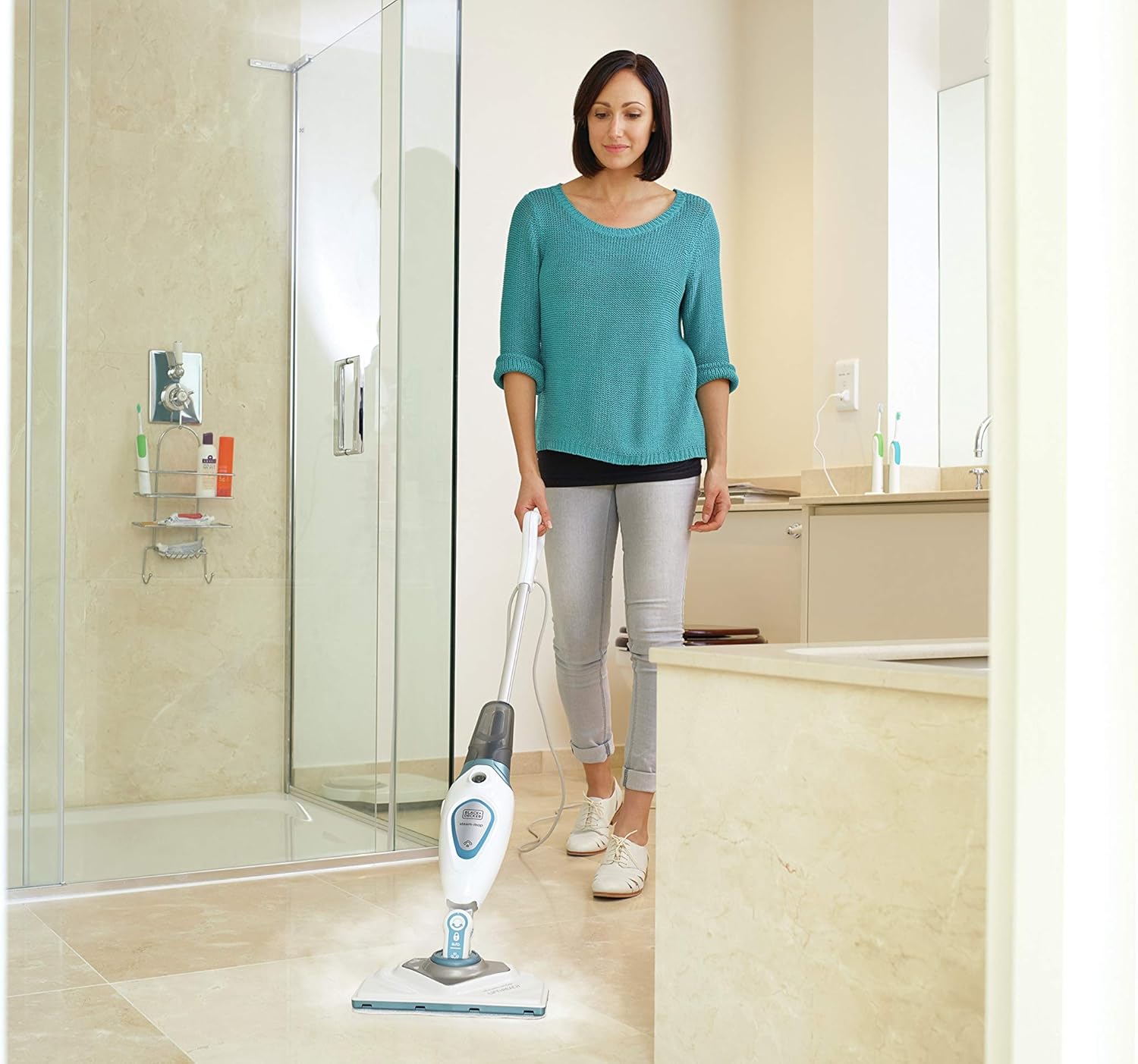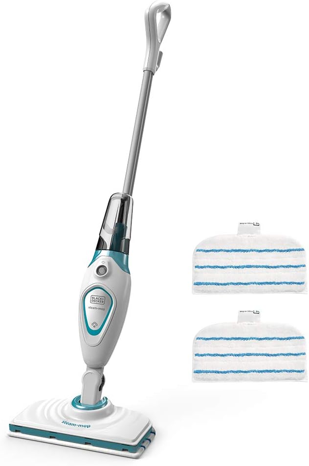 Black+Decker Dampfbesen Steam-Mop Basic FSM1615 (1300W, Dampfreiniger für hygienische, gründliche Sauberkeit, abnehmbarer Wassertank, 180° drehbarer Reinigungsfuß, inkl. 2 Mikrofaser-Pad) | قیمت یورویی 100.28€