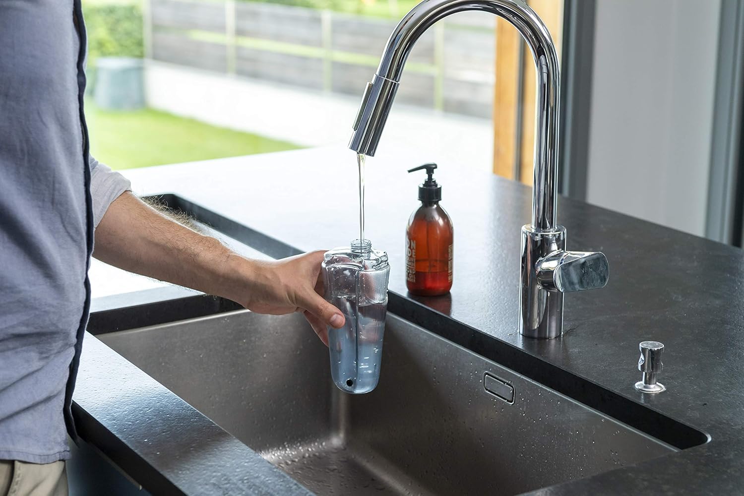 Black+Decker Dampfbesen Steam-Mop Basic FSM1615 (1300W, Dampfreiniger für hygienische, gründliche Sauberkeit, abnehmbarer Wassertank, 180° drehbarer Reinigungsfuß, inkl. 2 Mikrofaser-Pad) لینک آمازون : https://www.amazon.de/dp/B01B63GUGC?th=1&psc=1 مرحله گرمایش کوتاه: دستگاه بخارشوی حداکثر پس از 20 ثانیه آماده استفاده است پایه تمیز کردن: پایه تمیز کننده قابل چرخش 180 درجه امکان پاک کردن آسان زیر مبلمان یا گوشه ها را فراهم می کند. تمیز از نظر بهداشتی: بخارشوی تمیزی درخشان را تضمین می کند و 99.9 درصد میکروب ها و باکتری های خانگی را بدون مواد شوینده شیمیایی، حتی در کف های مهر و موم شده از بین می برد. حفاظت از رسوب آهک: سیستم فیلتر آب یکپارچه از بخارشوی در برابر رسوب آهک محافظت می کند و در نتیجه عمر مفید دستگاه را افزایش می دهد. محدوده تحویل: 1 عدد بخارشوی 1300 واتی، 1 عدد کابل 6 متری، 2 عدد پد تمیز کننده نازک