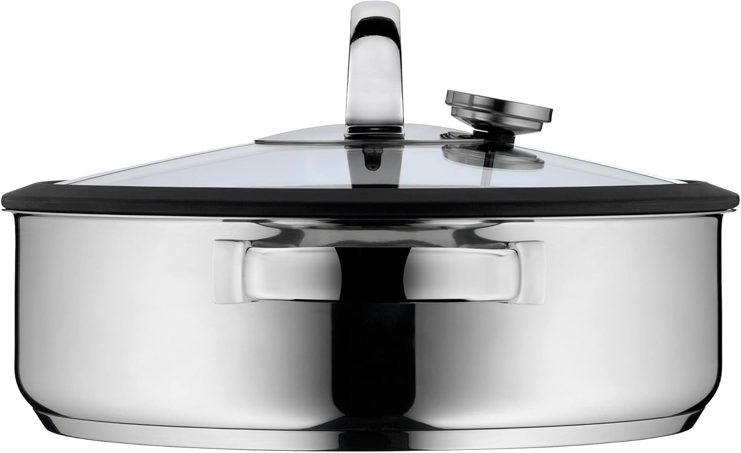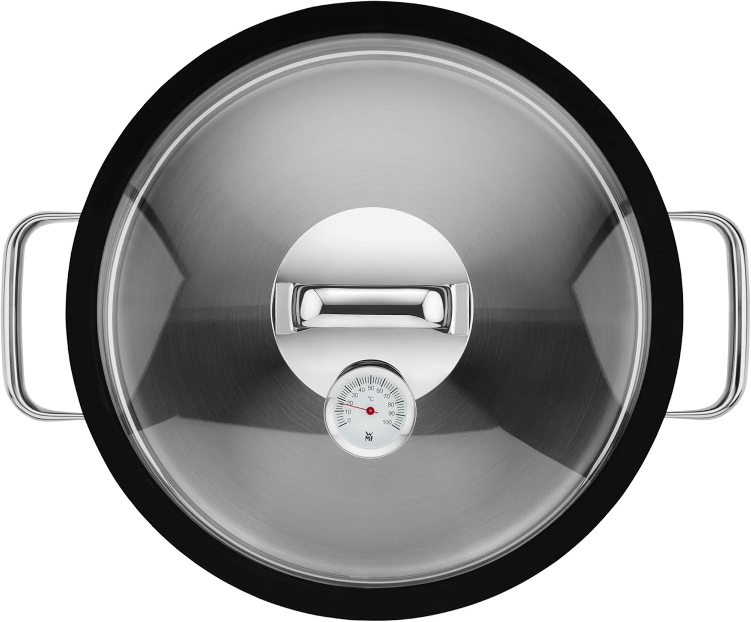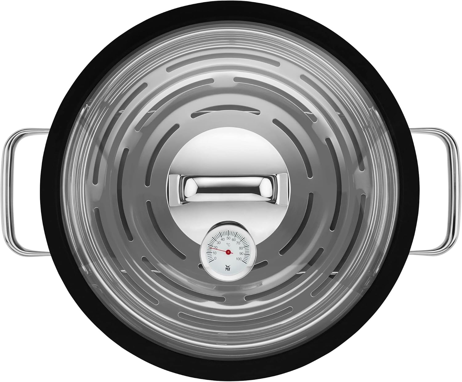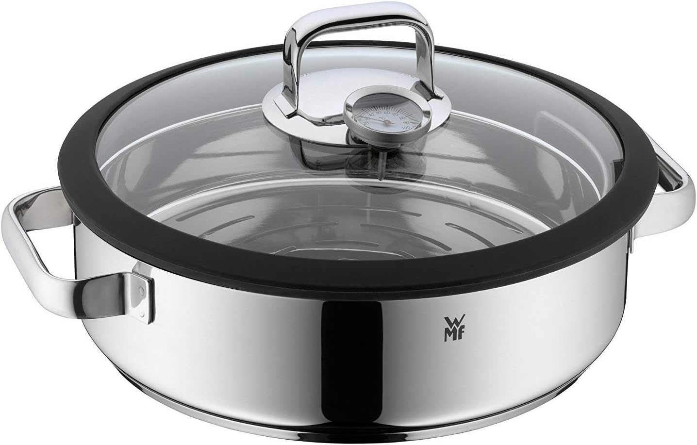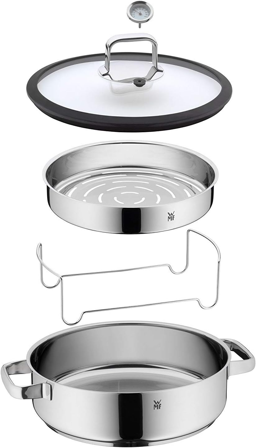 WMF Vitalis Aroma Dampfgarer 28 cm, Dampfgarer Topf, Bräter rund 5,0l, Dampfgartopf, Glasdeckel mit Silikonrand, Garthermometer, Garblech, Cromargan Edelstahl unbeschichtet, backofenfest 33.5 x 26 x 7.5 cm | قیمت یورویی 89.27€