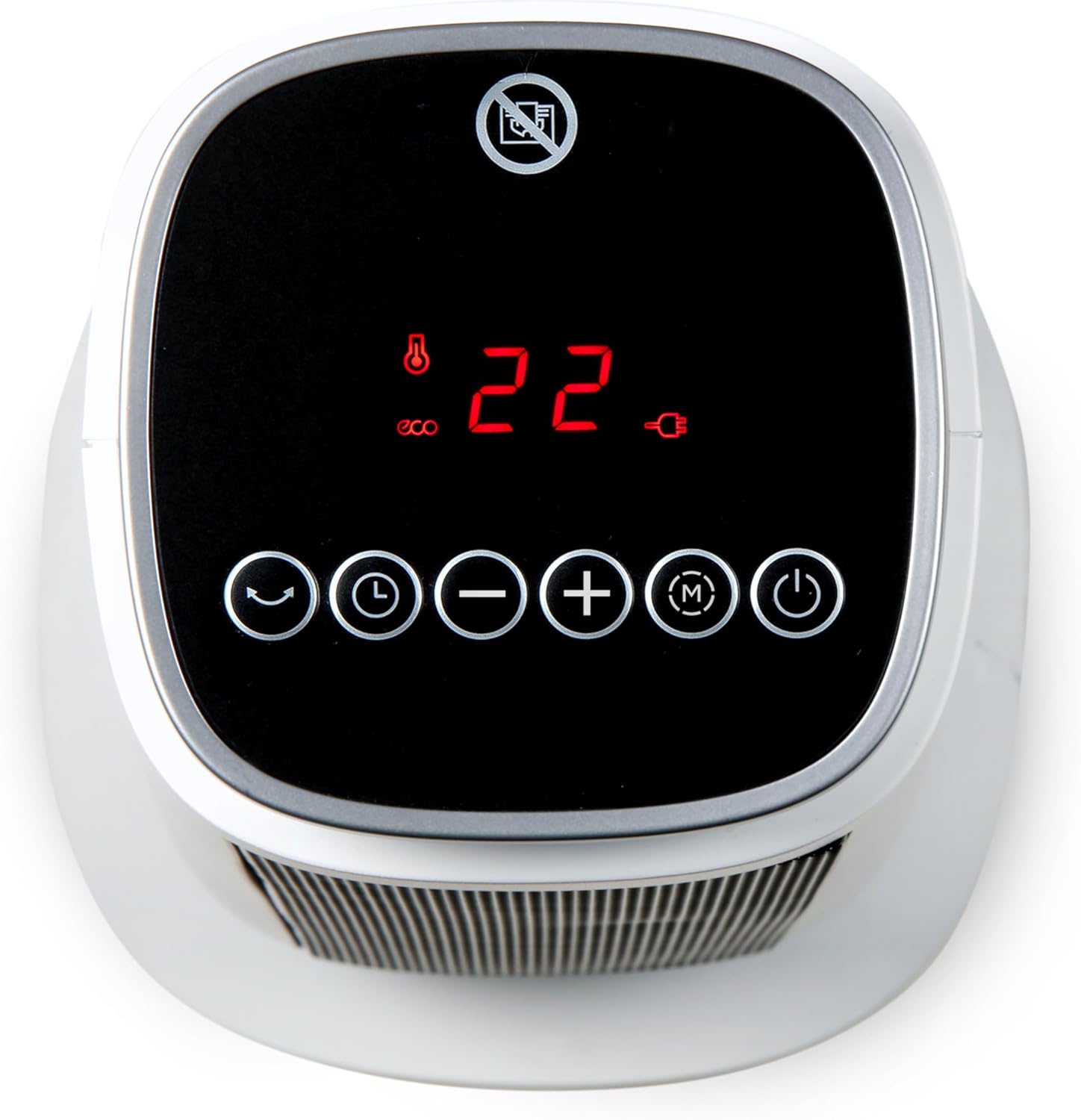 Leistungsstarke Heizung mit 2000 W Regulierbare Temperatur 5 - 35°C. Timer: 1 - 8 Stunden Eco-Funktion zum optimalen Halten der eingestellten Temperatur 2 Leistungsstufen: hoch - niedrig Bedienfeld mit Touchscreen und LED-Display Oszillationsfunktion Mit Sicherheitssensor, der das Gerät sofort ausschaltet, wenn es abgedeckt wird Integrierter Griff zum einfachen Transport des Geräts Überhitzungsschutz und Kippsicherung; Inklusive Fernbedienung | قیمت یورویی : 55.99€