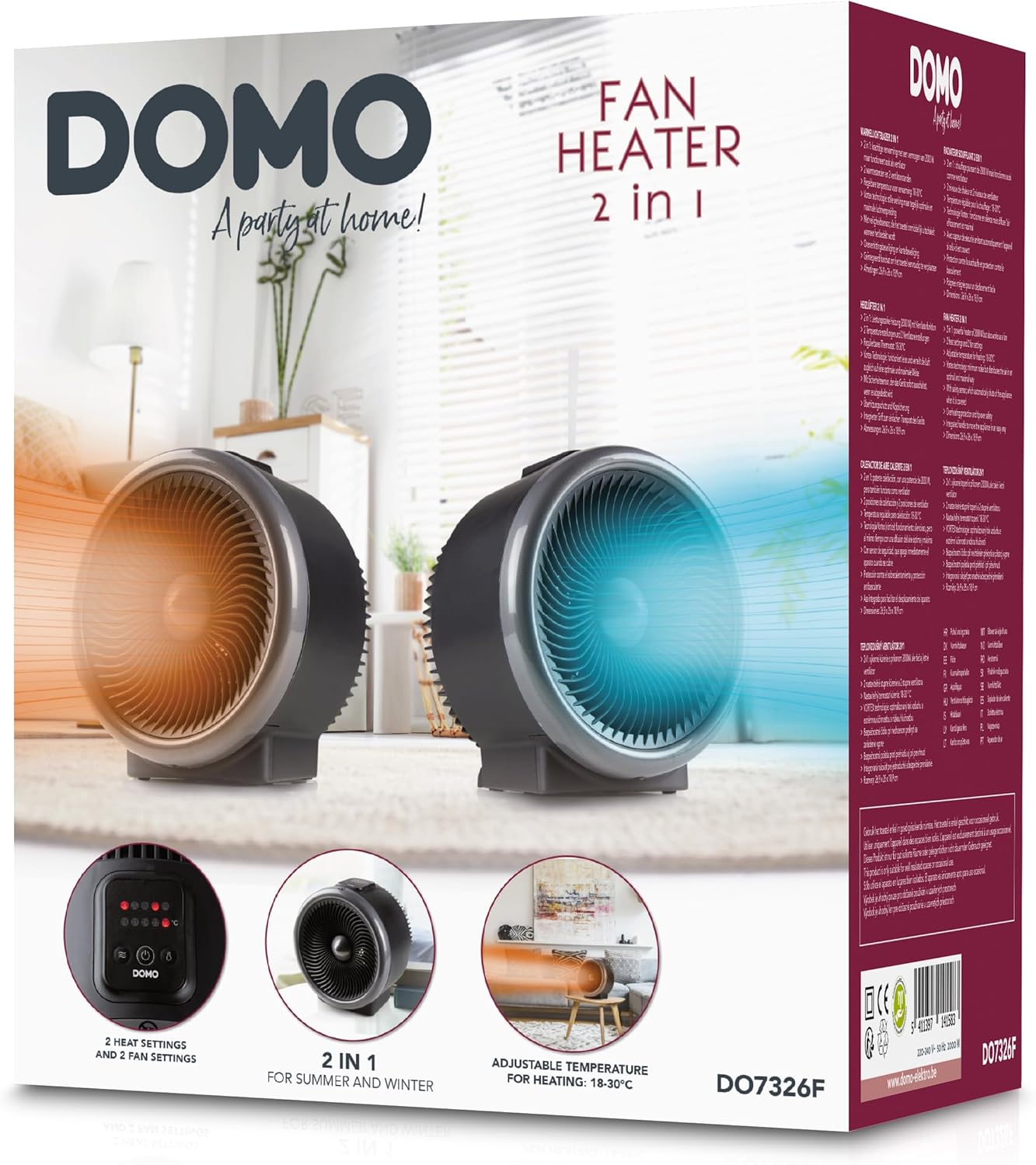 DOMO DO7326F Heizlüfter, Schwarz Round لینک آمازون : https://www.amazon.de/dp/B09H2FGFD8?th=1&psc=1 ۲ در ۱: بخاری قدرتمند (۲۰۰۰ وات) با عملکرد فن ۲ حالت تنظیم دما و ۲ حالت تنظیم فن ترموستات رگولیربار: ۱۸-۳۰ درجه سانتیگراد فناوری ورتکس: بیصدا کار میکند و هوا را به بهترین و بیشترین شکل ممکن توزیع میکند. دارای سنسور ایمنی که در صورت پوشیده شدن دستگاه، بلافاصله آن را خاموش میکند محافظت در برابر گرمای بیش از حد و واژگونی دسته یکپارچه برای حمل آسان دستگاه ابعاد: ۲۶.۹ در ۲۶ در ۱۸.۹ سانتیمتر