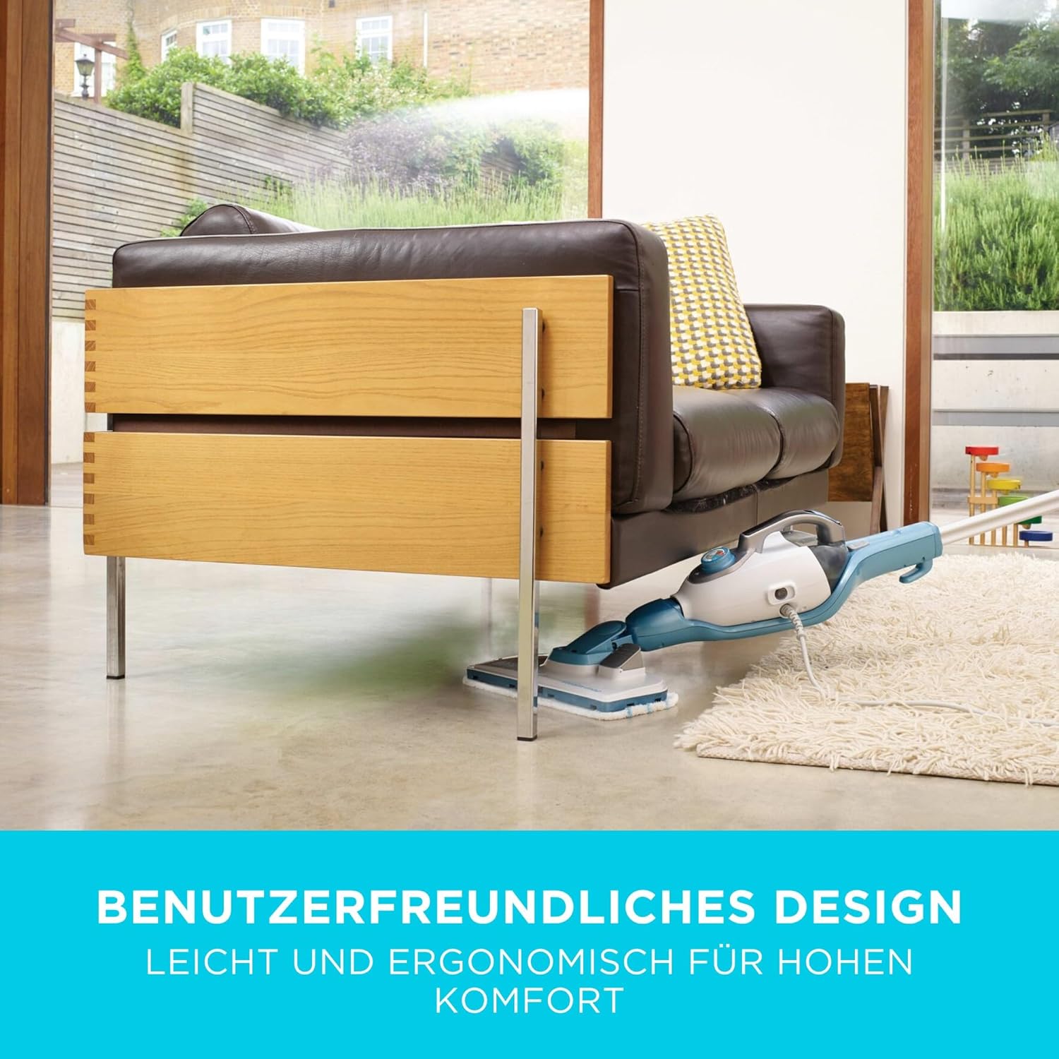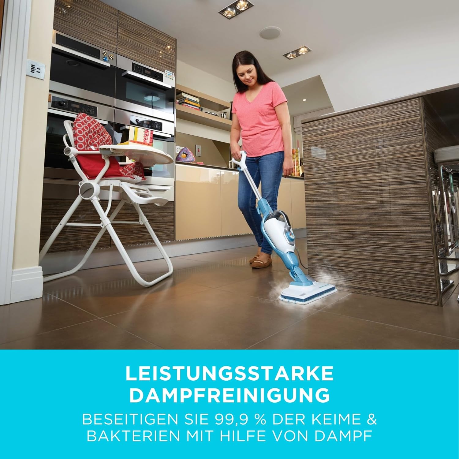 DIE DAMPFREINIGUNGSREVOLUTION: Beseitigen Sie 99,9 % der Keime und Bakterien mit der kombinierten Kraft von Dampf und dem innovativen SteaMitt Silikonhandschuh. VIELSEITIGES DAMPF-MOP-SYSTEM: Perfekt für Hartböden, Teppiche, Stoffe, Grills und Duschwände, bietet außergewöhnliche Leistung auf jeder Oberfläche. AUTOSELECT-TECHNOLOGIE: Passt den Dampfausstoß automatisch an den Bodentyp an für eine effektive, aber schonende Reinigung. BOOST-DAMPFFUNKTION: Ein Schnelllösepedal liefert zusätzlichen Dampf, um hartnäckige Flecken und hartnäckigen Schmutz mühelos zu beseitigen. GROSSER WASSERTANK: Der 500 ml transparente Behälter sorgt für weniger Nachfüllungen und ermöglicht es Ihnen, den Wasserstand auf einen Blick zu überwachen. LEICHT UND WENDIG: Entwickelt für einfache Handhabung, mit einem 6 m langen Kabel für eine erweiterte Reichweite und einem leichten Design für müheloses Reinigen. | قیمت یورویی : 149.99€