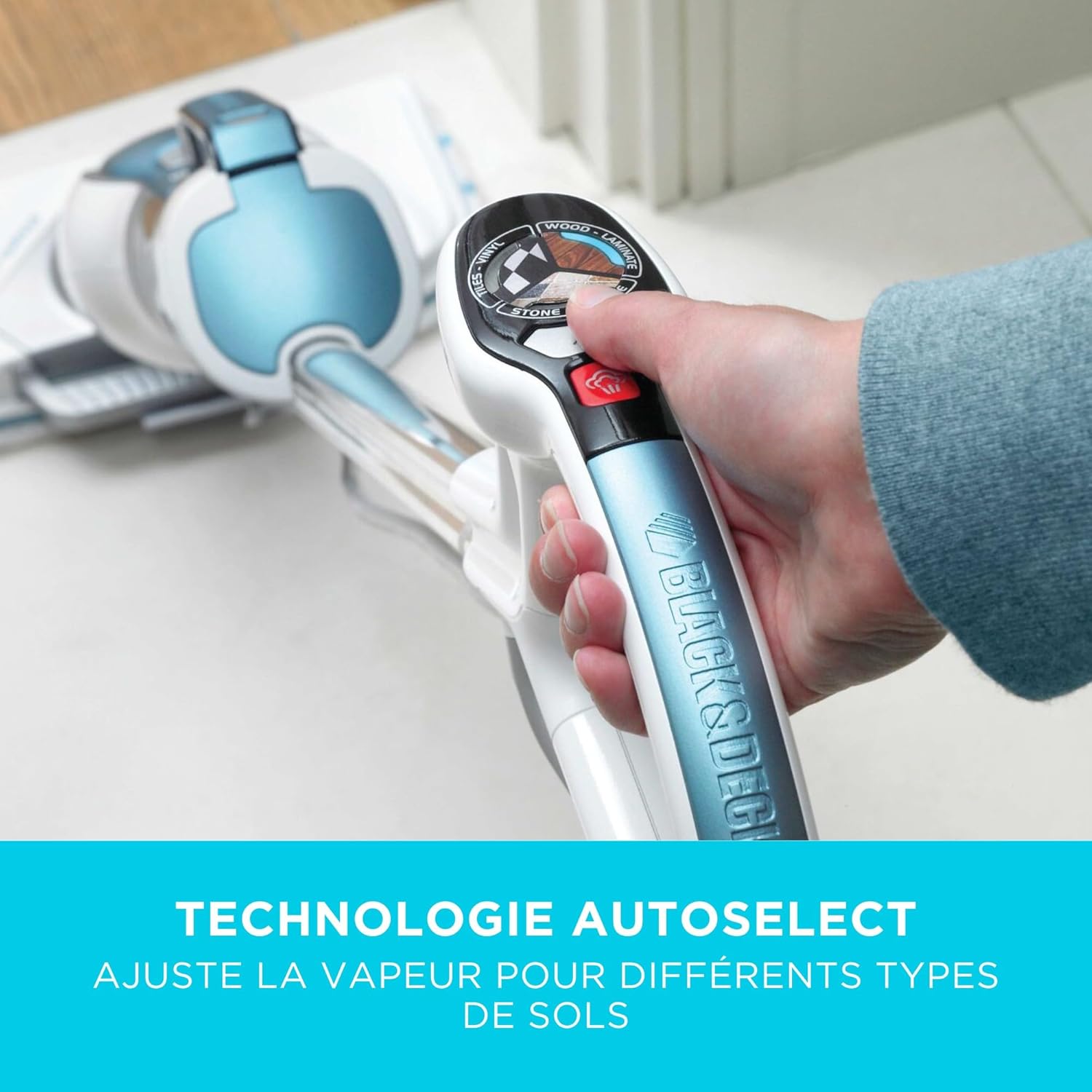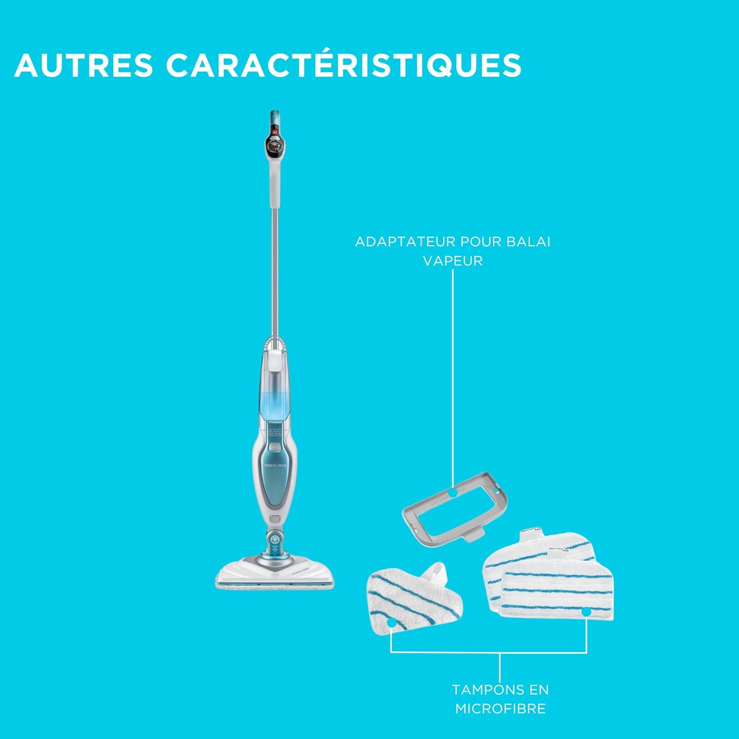BLACK+DECKER 1600W Dampfreiniger Steam Mop Deluxe (selbststehender Dampf Mop für versiegelte Hartböden, Bodenreinigung mit waschbarem Microfaser-Pad, 180° drehbarer, herausnehmbarer Fuß) FSM1630-QS | قیمت یورویی 138.9€