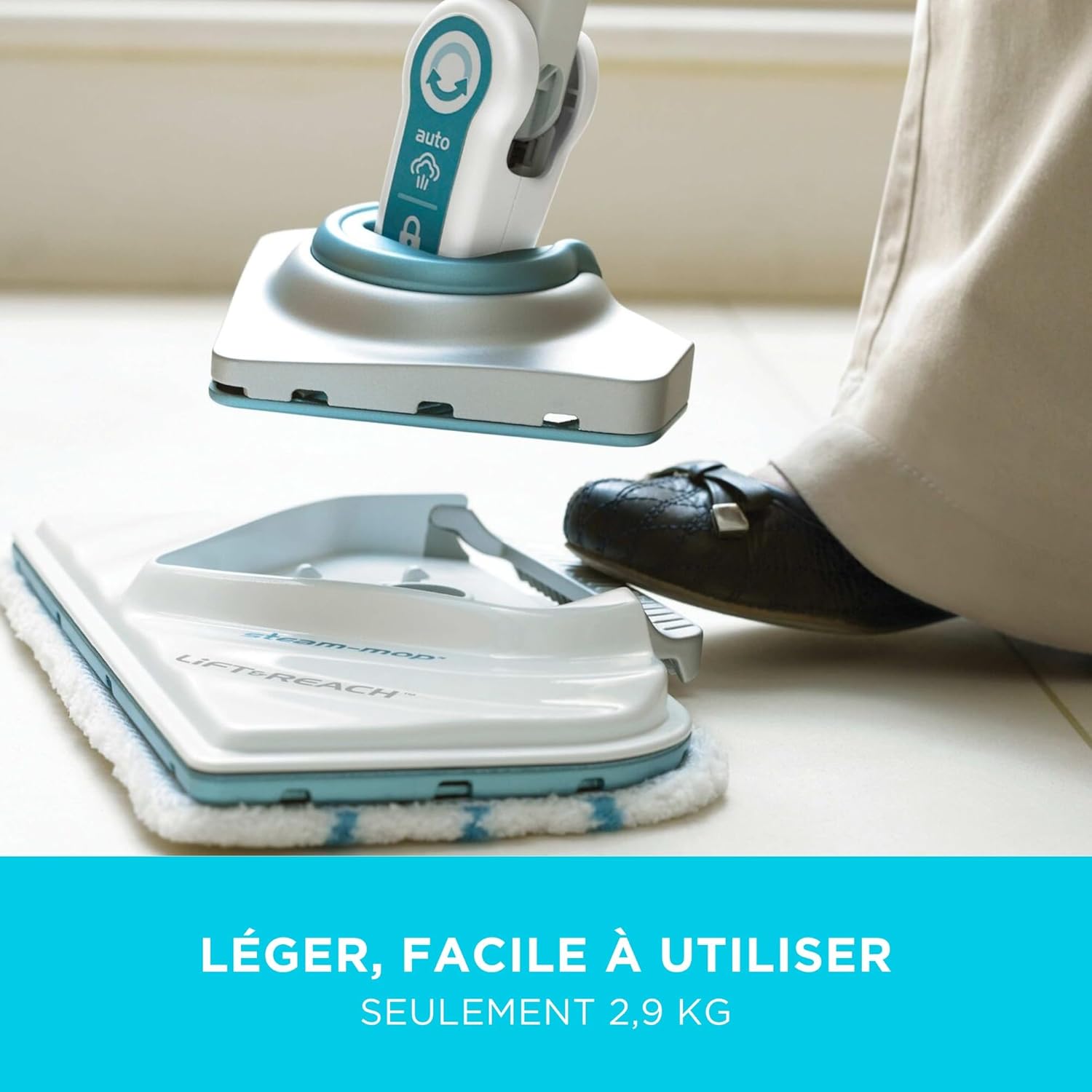 SICHERE DAMPFREINIGUNG: Beseitigt 99,9 % der haushaltsüblichen Bakterien und Keime, ohne chemische Reinigungsmittel zu verwenden. SCHNELL AUFGEHEIZT: In nur 15 Sekunden einsatzbereit, für eine schnelle und effiziente Reinigung. GROSSER WASSERTANK: 460 ml Wassertank, leicht mit Leistungswasser zu befüllen, automatischer & regelmäßiger Dampfausstoß AUTOSELECT-TECHNOLOGIE: Die Steuerungen passt den Dampfstoß automatisch an den ausgewählten Bodentyp an und sorgt so für optimale Leistung mit schnell trocknenden Ergebnissen. EXTRA DAMPF: Auf Knopfdruck stößt das Gerät für 10-15 Sek. 50% mehr Dampf aus. AUTOMATIKABSCHALTUNG: Wird das Gerät in aufrechter Position gestellt, erfolgt eine Automatikabschaltung des Dampfs. DELTA-REINIGUNGSFUSS: Mit dem innovativen Delta-Reinigungsfuß können Sie problemlos durch enge Räume und Ecken wischen - für eine gründliche Reinigung in schwer zugänglichen Bereichen. PRAKTISCH: 180° drehbarer Fuß für problemloses Wischen unter Möbeln und in Ecken. LANGLEBIGE MIKROFASER-PADS: die hochwertigen Mikrofaser-Pads bieten außergewöhnliche Schmutzaufnahme, waschmaschinenfest bis zu 60° C & formstabil auch nach mehrfacher Wäsche LIEFERUMFANG: 1x Dampfreiniger mit 6m Kabel, 1x Teppichgleiter, 2 Universal-Reinigungspads, 1x Mikrofaser-Deltapad | قیمت یورویی : 138.9€