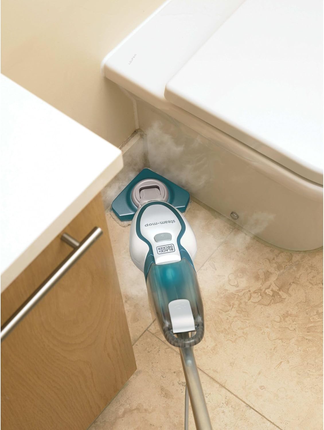 CHEMIEFREIE REINIGUNG MIT DAMPF: Der BLACK+DECKER Steam-Mop 1600W beseitigt 99,9% der Bakterien und Keime und sorgt für eine chemiefreie Reinigung Ihres Zuhauses. VIELSEITIG: sichere Anwendung auf allen Böden, einschließlich Parkett (lackiert), Laminat, Stein, Marmor, Linoleum und Fliesen, perfekt für jeden Raum BESONDERS WENDIG: Der um 180° schwenkbare Fuß sorgt für ein problemloses Wischen unter Möbeln und engen Zwischenräumen. SCHNELLE EINSATZBEREIT: mit einem 350 ml Tank, der innerhalb von max. 20 Sekunden aufheizt, 5m Kabel für maximalen Arbeitsradius LIEFERUMFANG: 1x 2in1 Dampfbesen, 1x Boden-Reinigungspad, 1x Delta-Reinigungspad für den Delta-Reinigungsfuß | قیمت یورویی : 107.18€