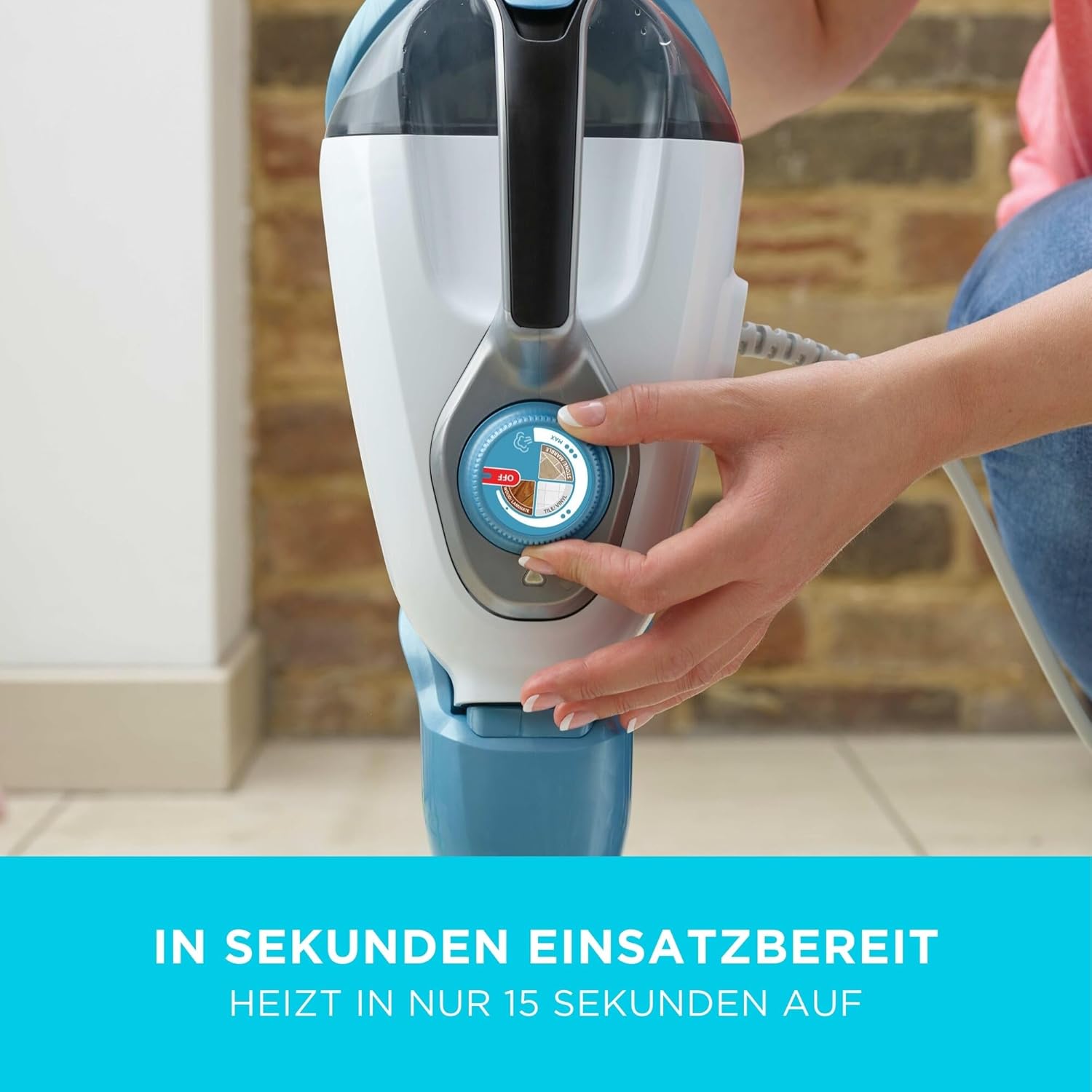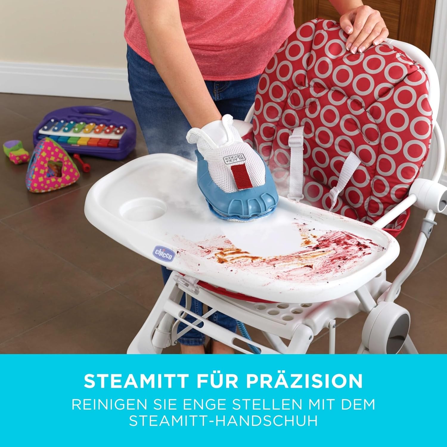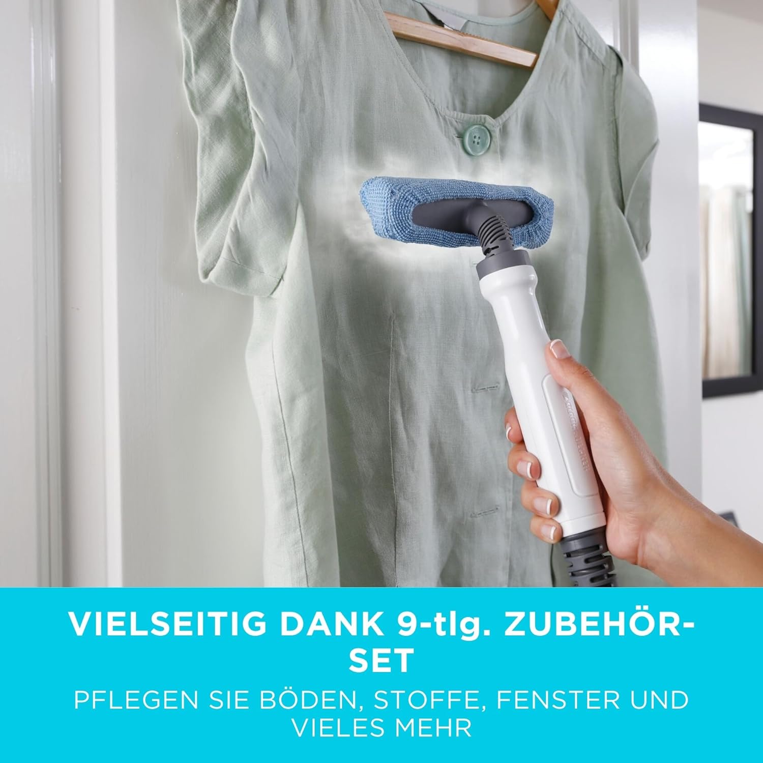SEHR VIELSEITIG: kombiniert einen Handdampfreiniger und Dampfbesen für vielseitige Reinigung von Böden, Arbeitsflächen, Armaturen, Fenster, Fliesen, Gartenmöbel, Ofen, Herd, Grill u.v.m. HAND-DAMPFREINIGER & STEAMITT-HANDSCHUH: Genießen Sie gründliche Reinigung mit dem abnehmbaren Handdampfreiniger und dem innovativen SteaMitt-Handschuh für schwer zugängliche Bereiche. HYGIENISCH REIN: Der Dampfreiniger sorgt für strahlende Sauberkeit und beseitigt 99.9 % der Haushaltskeime und -bakterien ohne chemische Reinigungsmittel SCHNELL EINSATZBEREIT: In nur 15 Sekunden aufgeheizt, mit einem 500 ml Wassertank, der bis zu 20 Minuten Dampf liefert LIEFERUMFANG: 1x Dampfbesen, 1x Dampfhandschuh mit 1,5 m Schlauch, 2x Universalpads für Dampfhandschuh, 2x Boden-Reinigungspads, 1x flexibler Schlauch 1,2m, 1x Fensterabzieher, 1x Bürste, 1x Textilauffrischer, 1x Fugenbürste | قیمت یورویی : 139.2€