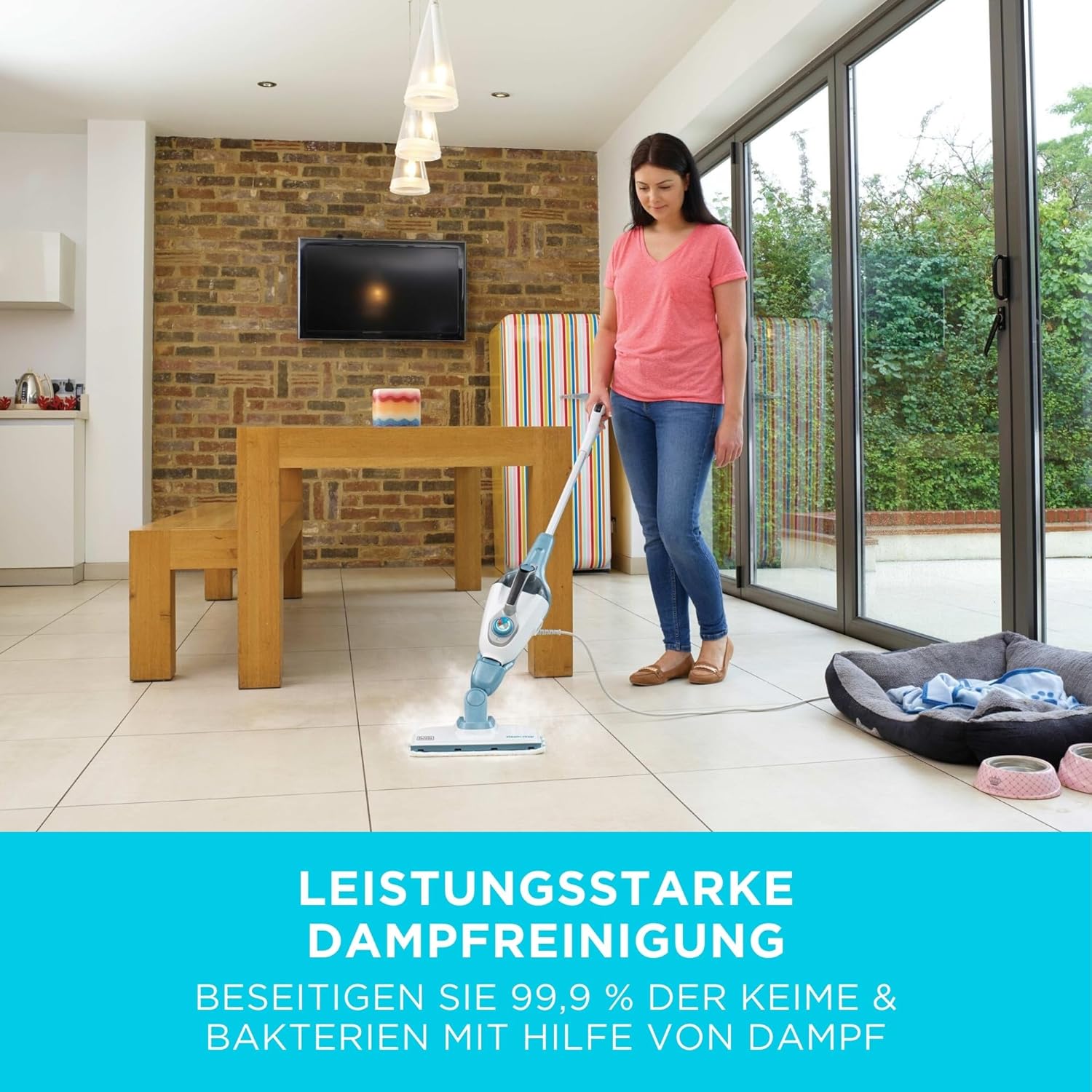 BLACK+DECKER 9-in-1 Dampfbesen Steam-mop (mit Steamitt Dampfhandschuh zur Oberflächenreinigung, AutoSelect-Technologie, 180° drehbarer Reinigungsfuß, inkl. 9-tlg Zubehör) FSMH1351SM-QS | قیمت یورویی 139.2€