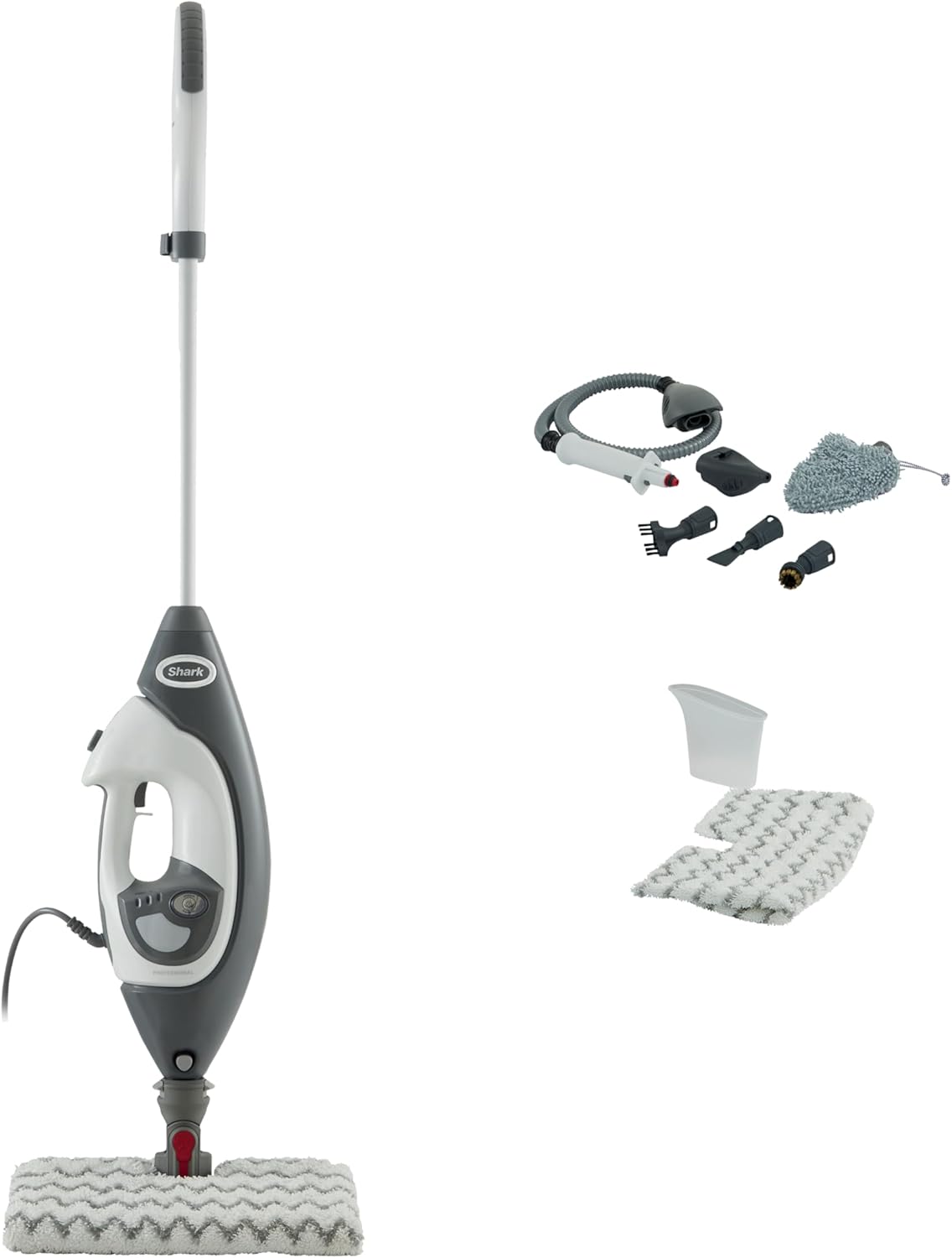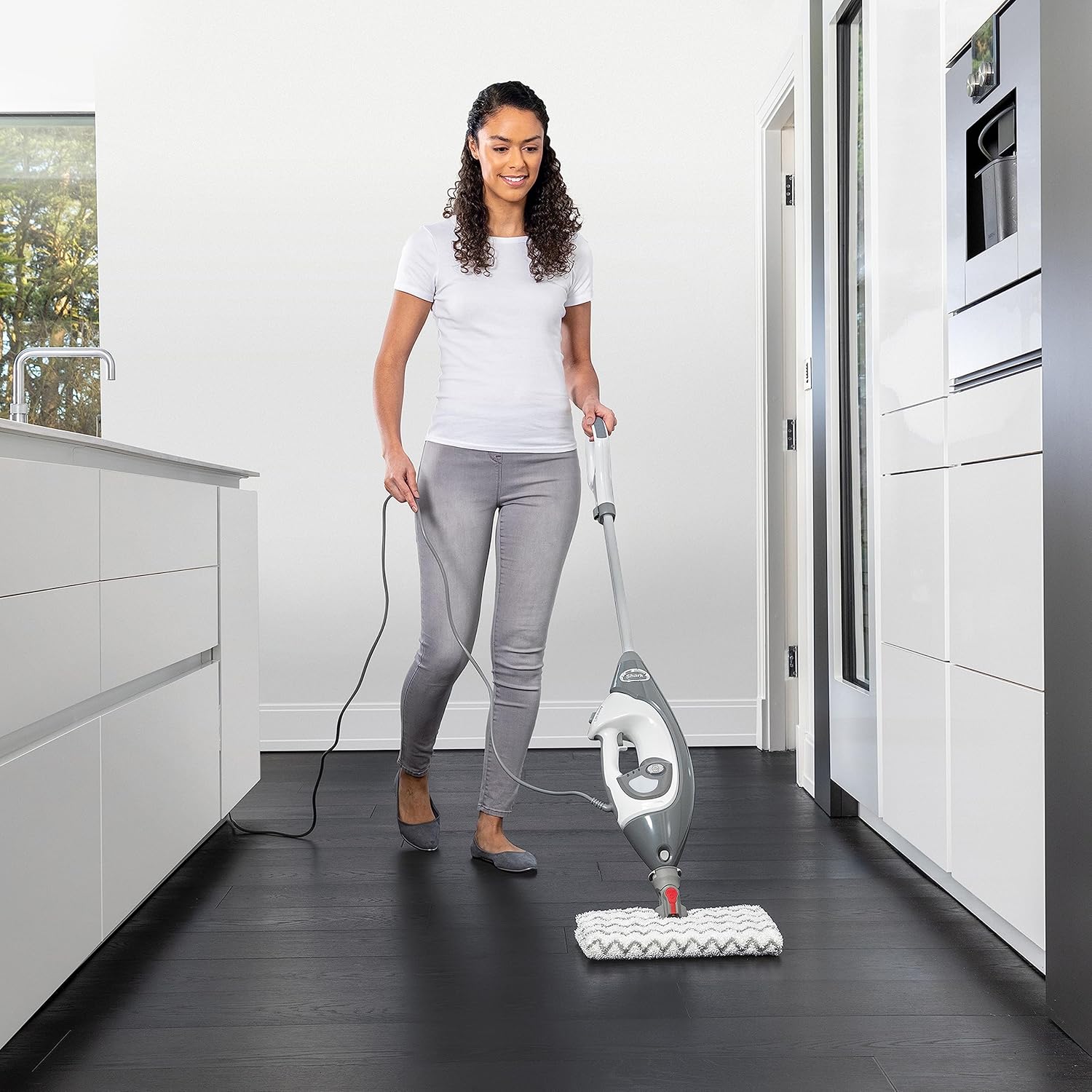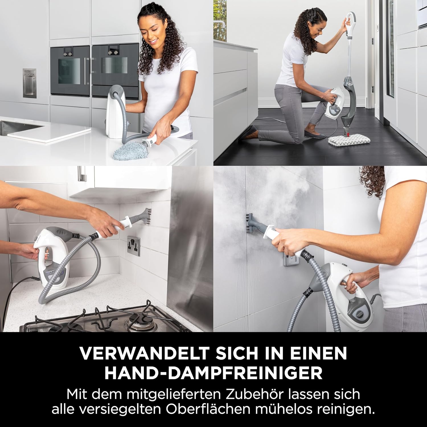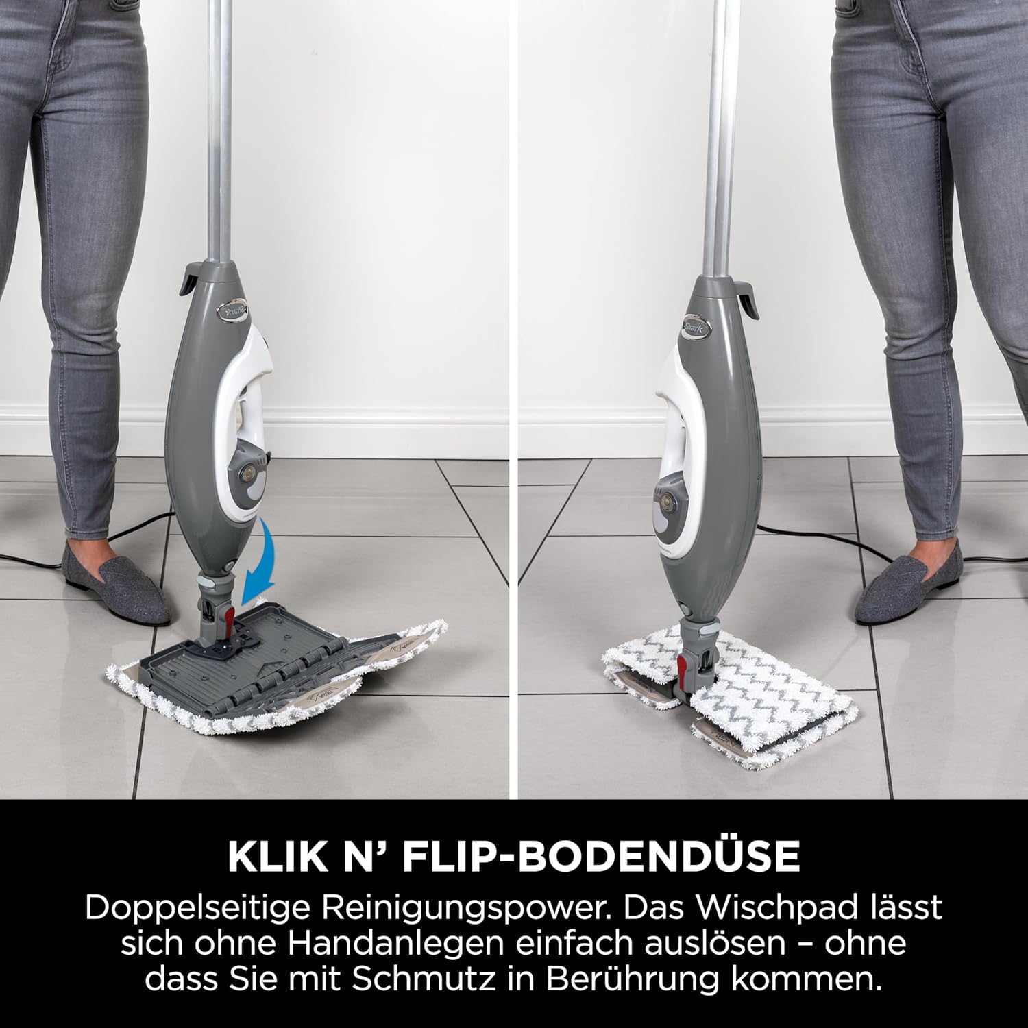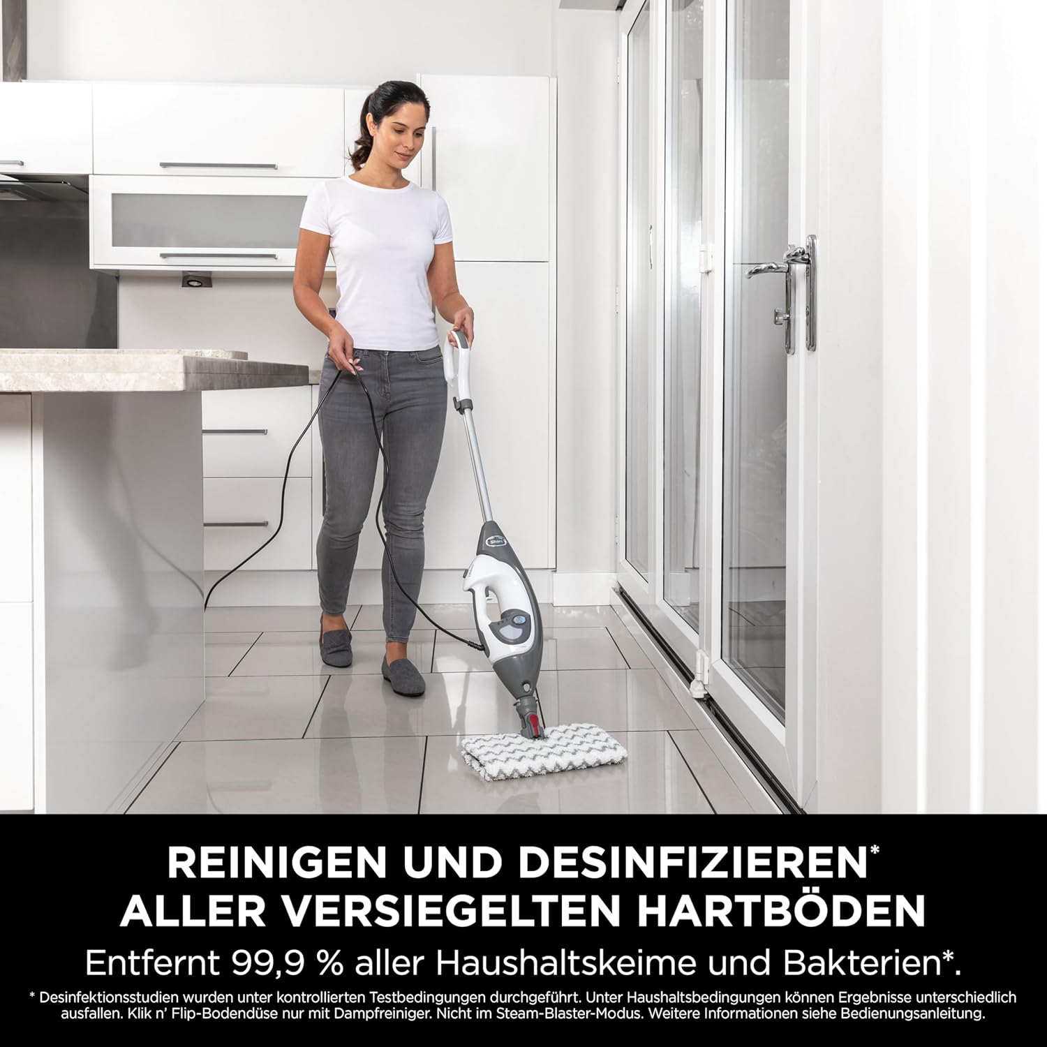 Shark Klik n' Flip Dampfreiniger, Boden- und Handreiniger, Dampfreiniger für Hartböden, Fliesen, Oberflächen, Wasserhähne und Glas, 5 Zubehörteile, 2 Einstellungen, Grau/Weiß S6005EU | قیمت یورویی 129.99€