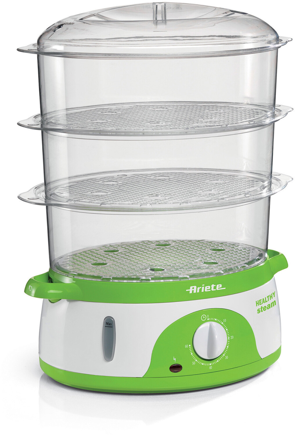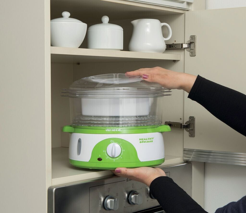 مدل 911 از برند آریته، دستگاهی مناسب برای پخت رژیمی است که با ظرفیت ۹ لیتر، امکان آمادهسازی گوشت، سبزیجات، برنج، تخممرغ و ماهی را بهصورت همزمان فراهم میکند. بخار کامل در کمتر از ۴۰ ثانیه تولید میشود. طراحی تو در تو سبدها باعث صرفهجویی در فضا میشود و میتوان بدون توقف، مخزن آب را دوباره پر کرد. این بخارپز برای خانوادههایی با رژیم غذایی سالم و سبک زندگی کمچرب طراحی شده است.