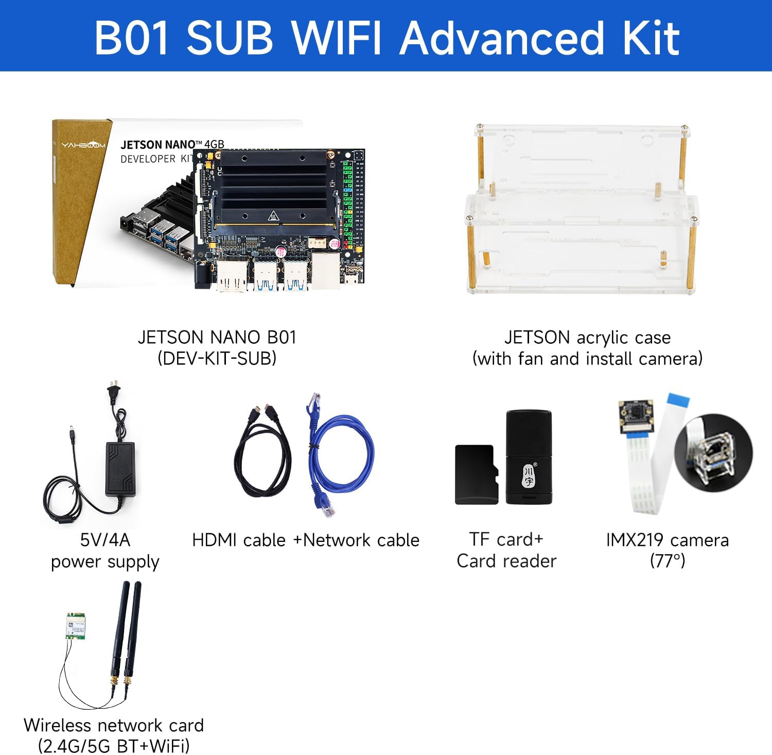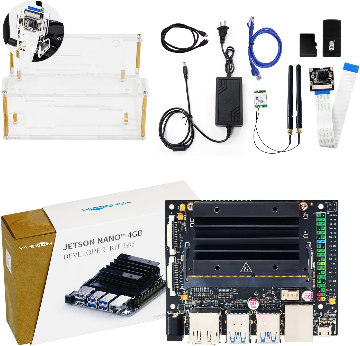 Yahboom Jetson Nano 4 GB Development Board+IMX219 Kamera+Acrylic Case (mit Lüfter) + Power Adapter+HDMI-Kabel+M.2 Netzwerkkarte+64 GB TF Card 16 GB eMMC for AI Robot Kit (WiFi Advanced Kit) | قیمت یورویی 302€