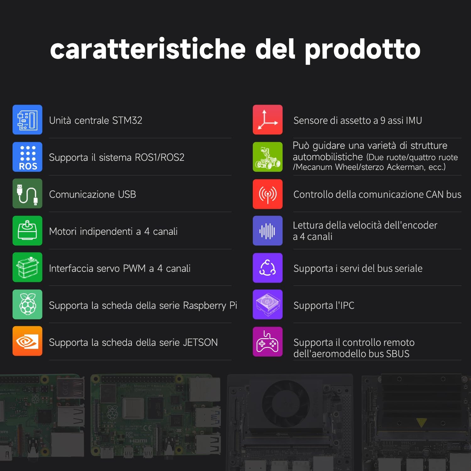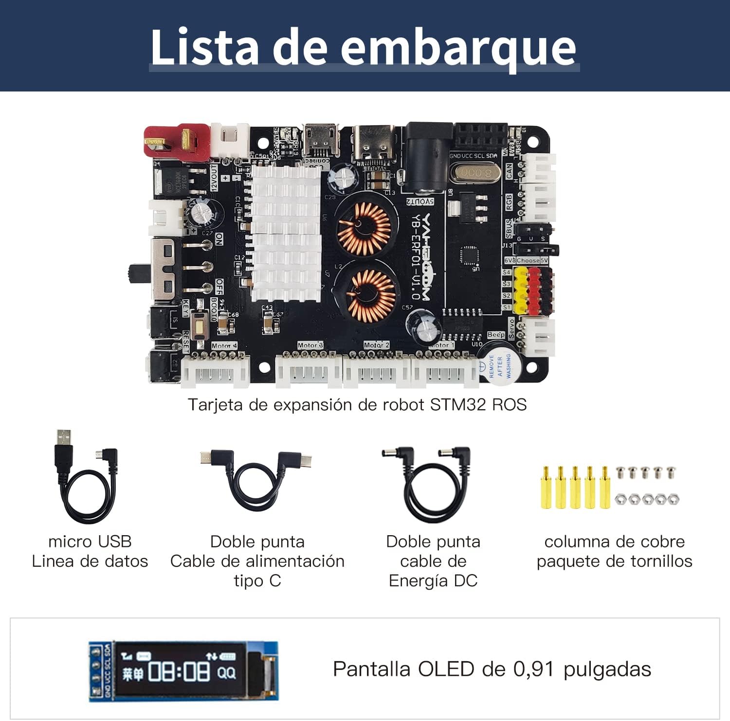 ROS Expansion Board for Raspberry Pi Jetson Nano Robotic Development Board with 9-axis IMU Sensor STM32F103C8T6 Core (ROS Expansion Board) لینک آمازون : https://www.amazon.de/dp/B0BXGFXSXP?th=1&psc=1 سازگار با انواع بردهای توسعه: سازگار با بردهای توسعه بردهای سری Raspberry Pi Jetson، Sunflower Pi و بردهای کنترل صنعتی. همچنین دارای انواع خروجی های رابط برق برای ارائه منبع تغذیه پایدار برای بردهای توسعه DIY است. رابط های جانبی غنی: برد توسعه از موتورهای کدگذاری 4 جهته پشتیبانی می کند که می توانند انواع مختلفی از وسایل نقلیه مانند چرخ های مکانیومی، دیفرانسیل های چهار چرخ، وسایل نقلیه ردیابی و غیره را هدایت کنند و همچنین از ارتباطات PWM و باس سریال پشتیبانی می کند. برد توسعه ربات چند منظوره - برد کنترل مجهز به سنسور تنظیم دقیق 9 محوری IMU است که می تواند اطلاعات وضعیت ربات را در زمان واقعی بدست آورد و به طور گسترده در توسعه کیت های ربات ROS استفاده می شود. اطلاعات کاملاً منبع باز: روال های اصلی درایورهای جانبی نوشته شده توسط STM32CUBEIDE از جمله موتور رمزگذار، سروو PWM، گذرگاه سریال سروو، خواندن و تجزیه و تحلیل سنسور دارایی 9 محور MPU9250 و کنترل رابط های ارتباطی مختلف را ارائه دهید. راننده