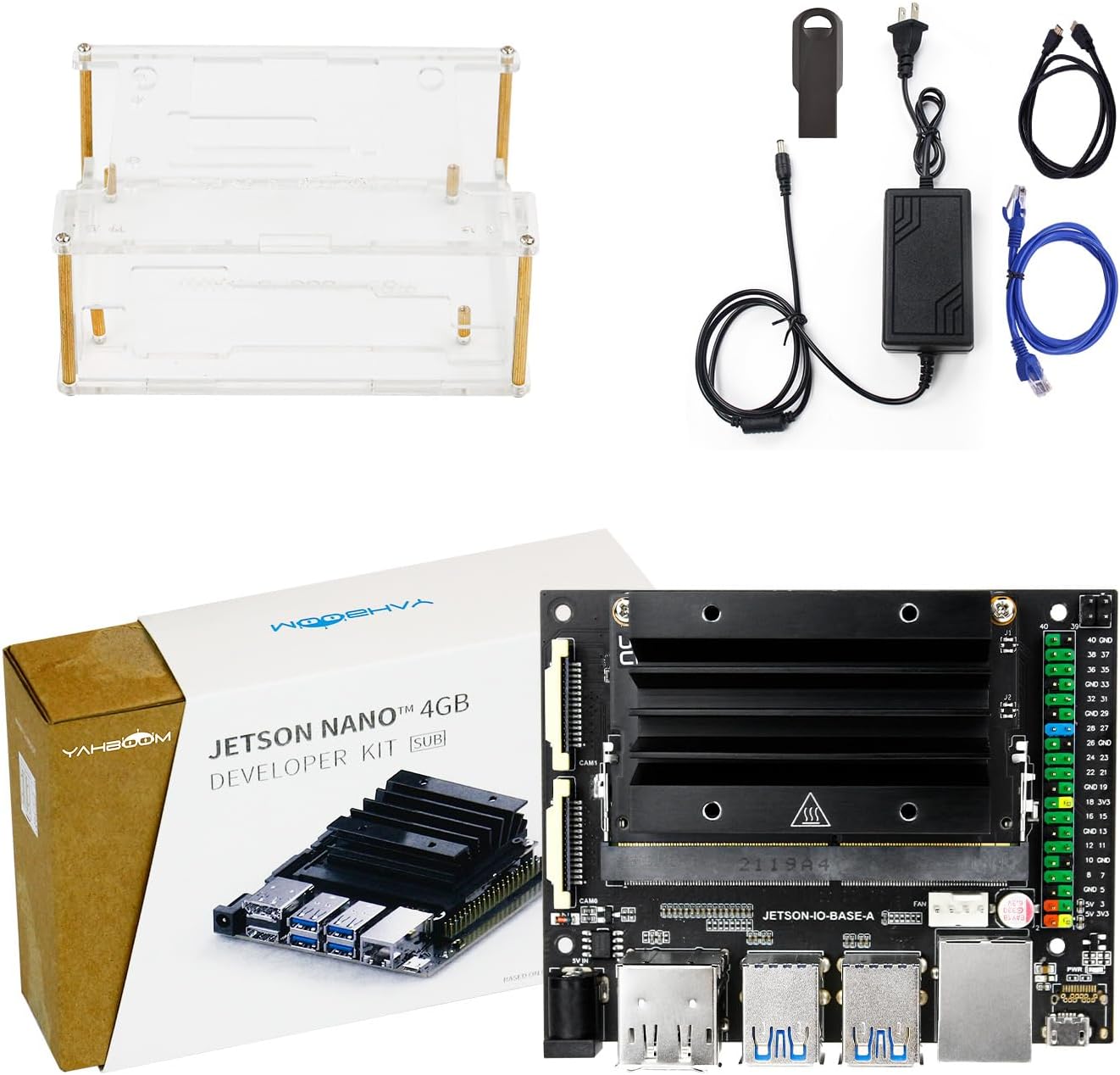 Yahboom Jetson Nano 4GB Development Board + Acrylic Case (mit Fan) + Power Adapter + HDMI Kabel + LAN Cable + 64GB USB Flash Drive 16GB eMMC Storage Provides Programming Ubuntu Data (Expansion Kit) | قیمت یورویی 262€