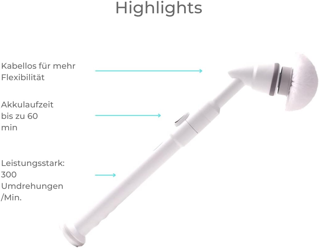 𝐒𝐭𝐫𝐚𝐡𝐥𝐞𝐧𝐝𝐞 𝐒𝐚𝐮𝐛𝐞𝐫𝐤𝐞𝐢𝐭 ✔- müheloses Reinigen von hartnäckigem Schmutz im Innen- und Außenbereich; erreichen Sie mühelos schwierigste Ecken und Winkel beim Reinigen 𝐇𝐨𝐜𝐡𝐰𝐞𝐫𝐭𝐢𝐠𝐞 𝐐𝐮𝐚𝐥𝐢𝐭ä𝐭 ✔- starke Leistung mit 300 UpM und einem Bürstenaufsatz mit 3000 Reinigungs-Borsten 𝐅ü𝐫 𝐚𝐥𝐥𝐞 𝐎𝐛𝐞𝐫𝐟𝐥ä𝐜𝐡𝐞𝐧 𝐮𝐧𝐝 𝐖𝐢𝐧𝐤𝐞𝐥 ✔ - kein Bücken oder Strecken Dank der Verlängerungsstange 𝐋𝐞𝐢𝐜𝐡𝐭𝐞 𝐇𝐚𝐧𝐝𝐡𝐚𝐛𝐮𝐧𝐠 ✔- einfacher Umgang und wiederaufladbare Batterie (NiMH Akku) mit einer 90 minütiger Laufleistung 𝐆𝐞𝐠𝐞𝐧 𝐡𝐚𝐫𝐭𝐧ä𝐜𝐤𝐢𝐠𝐞 𝐕𝐞𝐫𝐬𝐜𝐡𝐦𝐮𝐭𝐳𝐮𝐧𝐠𝐞𝐧 ✔- Dieses Set beinhaltet: 1 x Turbo Scrub mit Universalbürste, 1 x Ladegerät, 1 x Verlängerungsstange, 1 x Kegelbürste, 1 x Flachbürste | قیمت یورویی : 39.95€